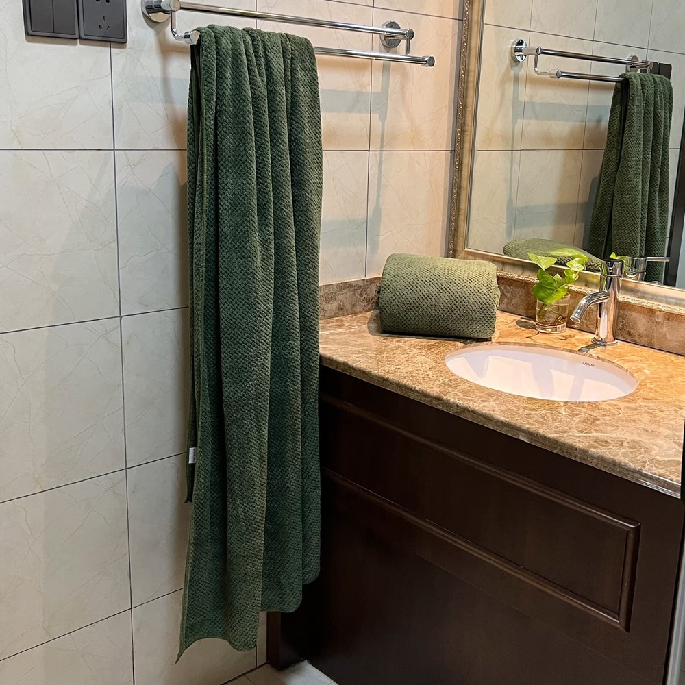 These oversized bath towels are amazing! The extra-large size wraps around perfectly, and the microfiber material is incredibly soft and lightweight—it feels like a cozy blanket. The olive green adds a nice touch of elegance to my bathroom. Super absorbent and quick-drying, they’re perfect after a shower or at the beach. Definitely worth it for the price!