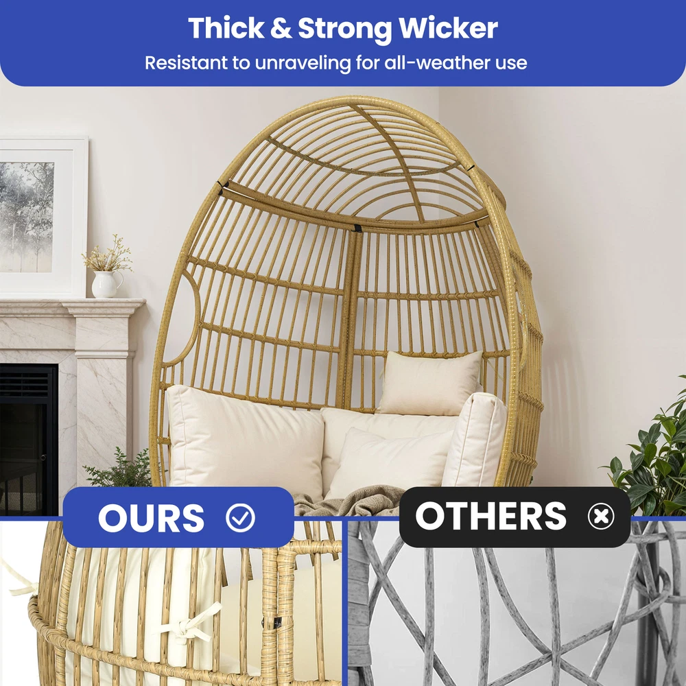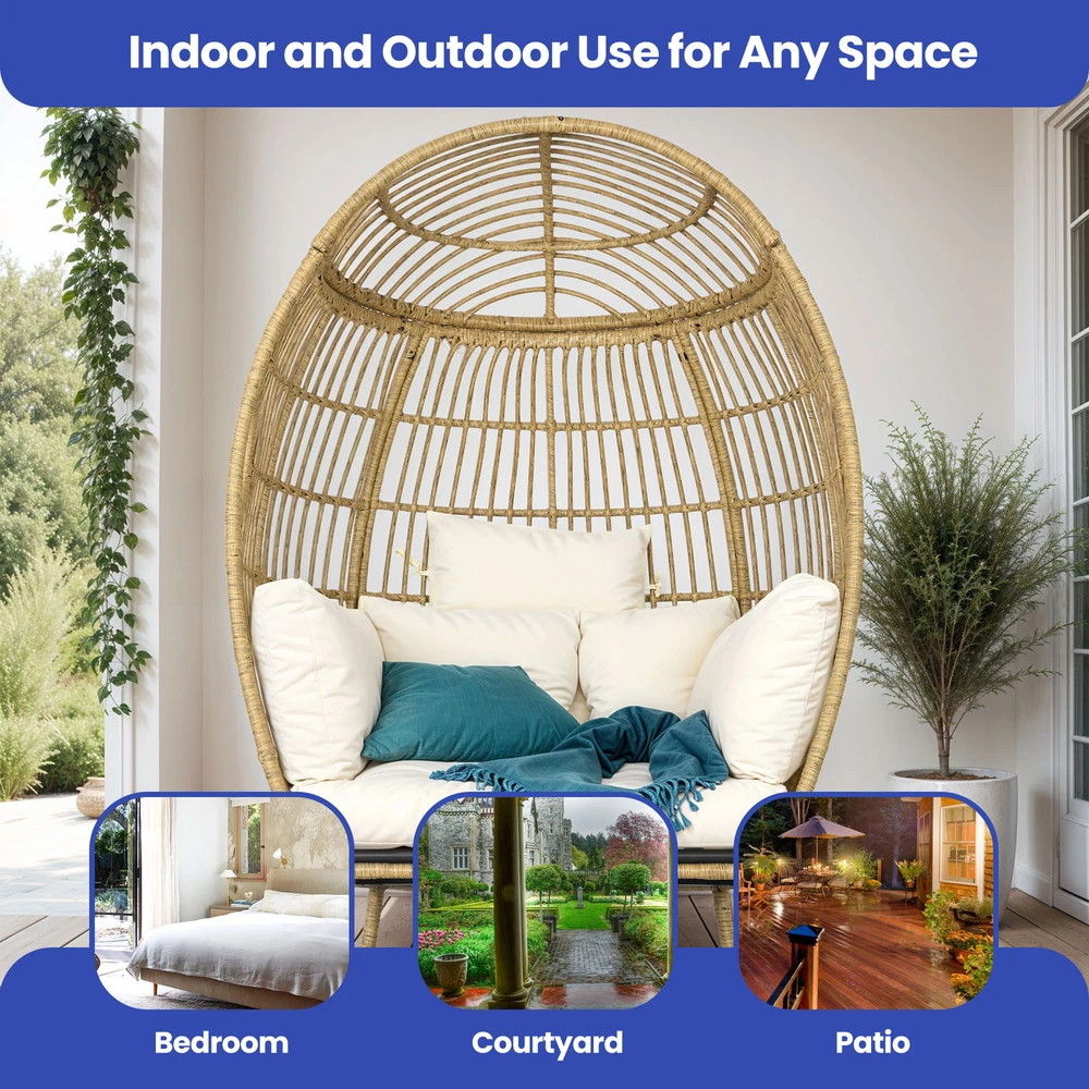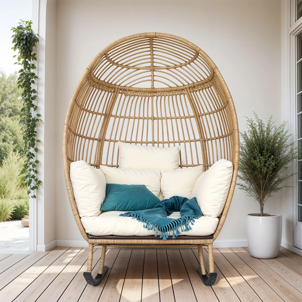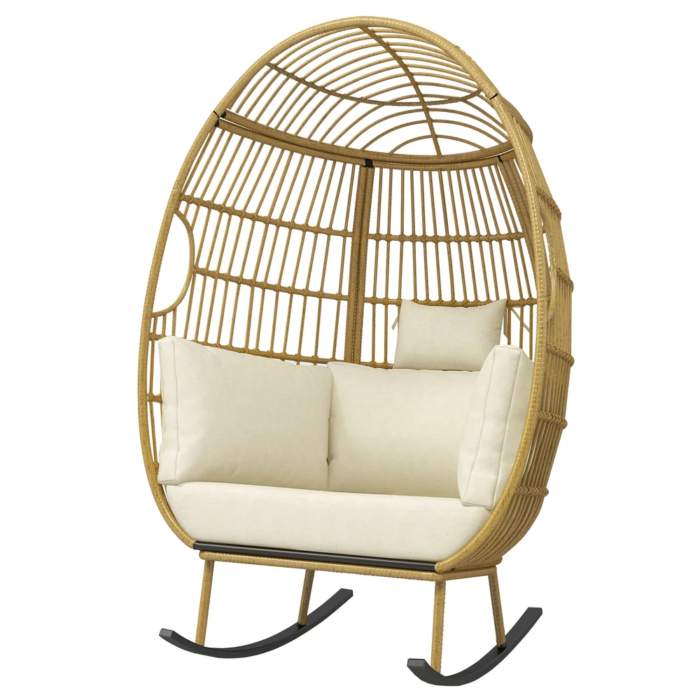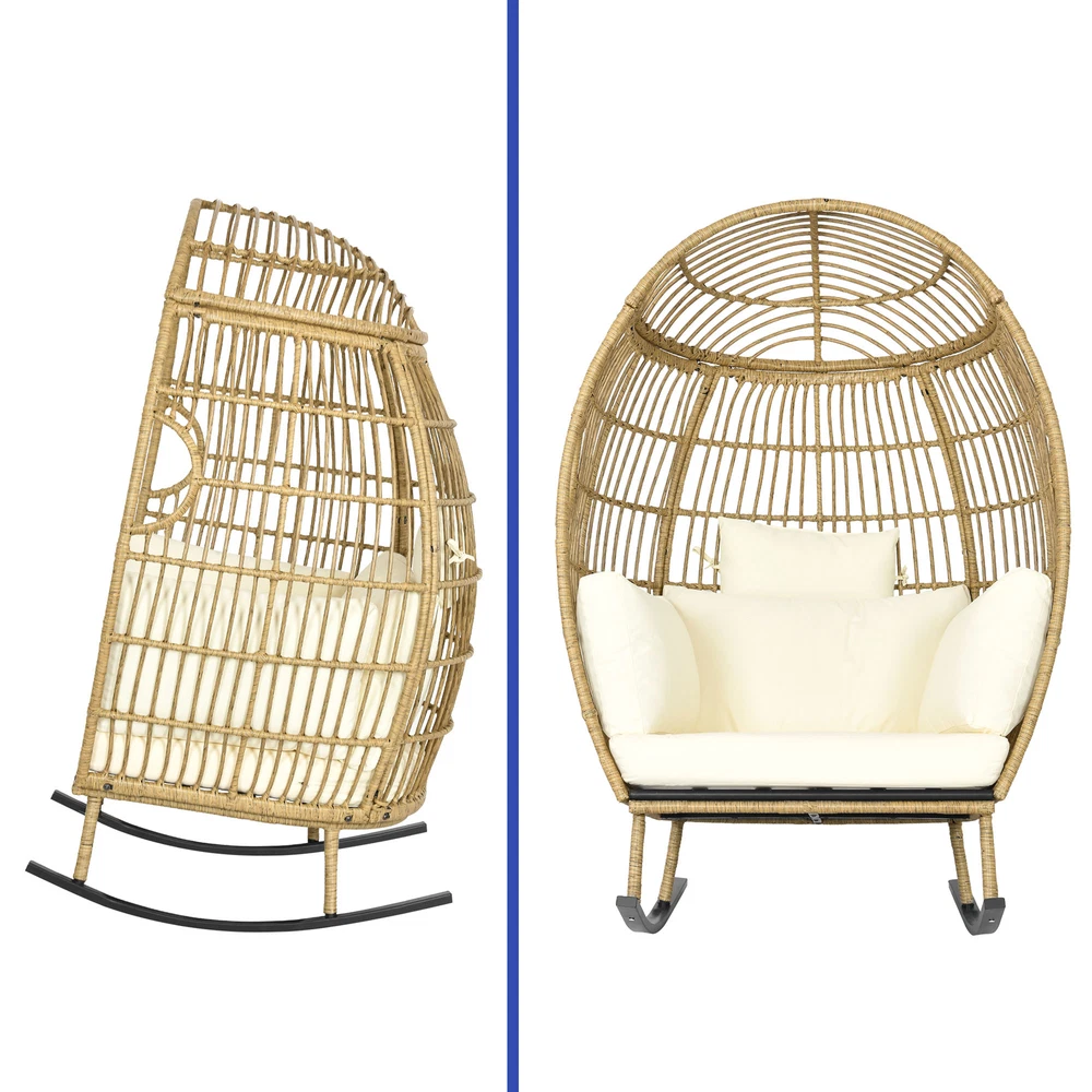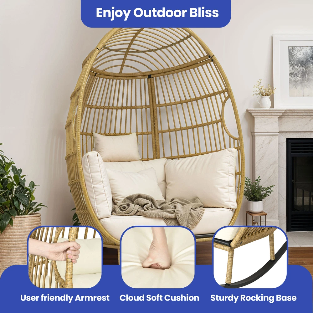 Oversized Rattan Rocking Egg Chair Indoor Wicker Basket Chair Lounger w/ Cushion Product Description NOTE: Professional Installation Would Be Highly Recommended. Description : 1. Color: Beige 2. Material: Rattan, Wicker, Metal 3. Maximum Weight Capacity: 370 lbs 4. Room Type: Family Room, Entertainment Room, Reading Nook, Sunroom, Garden, Patio, Backyard, Outdoor, Courtyard, Deck, and Poolside 5. Features: Thick Comfortable Soft Cushions, Breathable Fabric, Thick & Strong Wicker, Rust-Resistant Metal, Cushion Strap, Removable Cover, UV Protected, Weatherproof, Waterproof, Easy to Assemble, Easy to Clean, Protective Foot Pads. Features: 1. Comfortable Outdoor Seating: This outdoor chair features a user-friendly armrest and a cloud-soft cushion for unparalleled comfort, alongside a sturdy rocking base that enhances stability and adds a gentle motion, perfect for relaxing. Each detail is designed to provide both comfort and durability, ensuring that this chair can be a cozy retreat in any outdoor setting. 2. Superior Wicker Durability: Crafted with thick and strong wicker, this outdoor chair is designed to withstand all weather conditions without unraveling, ensuring long-lasting durability and reliability compared to other materials. Its robust construction offers both aesthetic appeal and practical functionality , making it a superior choice for any outdoor setting. 3. Versatile Seating Solutions: This versatile chair is designed for both indoor and outdoor use , seamlessly integrating with any space from a cozy bedroom to a sunlit patio or a tranquil courtyard. Its robust design ensures durability and comfort, making it an ideal choice for enhancing any area with a stylish seating option. 4. Spacious Comfort: This robust wicker chair supports up to 370 pounds and measures 61 inches in height, ensuring a spacious and durable seating solution for a variety of settings. Its dimensions include a comfortable width of 40 inches and a depth of 35.4 inches, making it an ideal choice for both compact and expansive areas. Dimensions: 1. Chair Dimension: 40" W x 35.4" D x 61" H Package Included: 1. 1 x Rocking Egg Chair 2. 1 x Cushion Set 3. 1 x Instruction Manual Note: 1. During assembly, do not tighten screws until all holes are aligned. 2. Confirm the appropriate furniture size for your needs prior to purchase. 3. There may be a slight color discrepancy between the product as seen on your monitor versus in real life. 4. Do not expose the product to extreme sunlight. To extend product lifetime, cover item when not in use. 5. Contact us immediately if any components are missing or damaged upon arrival. Our customer service team will resolve your issue right away. 6. Protect cushions from rain. The inner sponge is NOT waterproof. To extend product lifetime, cover when not in use. 7. The product may be dispatched separately into 2 packages, may not arrive simultaneously. Shipping 1. Normally the item will be dispatched within 1 business day if payment is cleared before 12 pm PST. 2. Please verify the correct shipping address in your PayPal account before making the payment. We only dispatch the item to the address that is sent to us at the time of checkout. 3. We don't ship to Hawaii, Alaska, Puerto Rico, APO/FPO/PO Boxes. 4. We don't provide local pick-up service. 5. Normally we will use USPS, UPS, FedEx & LTL to dispatch items. Payment 1. We accept PayPal and credit card. 2. We will ship to the confirmed Paypal shipping address that is provided with the payment only. Return 1. 30 days Money Back Guarantee. 2. Please contact our customer service to receive a RMA form first if want to return the item. 3. All returned items MUST in new condition with the original package. Contact If has any problem, please contact us by sending an ebay message. Our customer service will resolve the problem as soon as possible. On Dec 26, 2024 at 00:13:03 PST, seller added the following information: