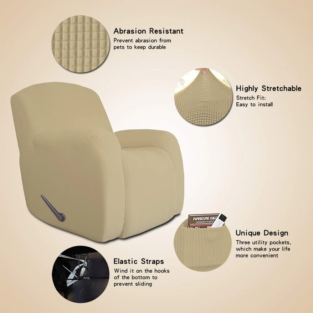 " brand household,the factory has been developing and producing high-quality environment-friendly household articles for ten years.The brand's goal:to make homes more comfortable Soft Material: High quality stretchy and comfortable materials.cotton Fabric. Anti-Slip Foams: Tuck into the grooves to make the fabric more tight Elastic Bottom: Give furniture a whole protection Utility: Give a fresh look and comfortable feeling while protecting furniture against stains, wear and tear. Easy Care: Machine washable in cold water. Wash separately at gentle cycle. Using mild laundry detergent. Do not bleach. Easy to Install: Just slip on. (Installation Instructions Included). DIMENSIONS: 1. Chair slipcover :fit seat width 25.5-40 in 2. Loveseat slipcover :fit seat width 46.5-63 in 3. Sofa slipcover :fit seat width 66-90 in 4. Oversized slipcover:fit seat width 78-106 in 5. Recliner slipcover:fit seat width 23-35 in 6. Oversized recliner slipcover:fit seat width 35-45 in Please measure before purchasing; See measuring guide in photos for a list of all measurements. Advisement: 1. Not Waterproof 2. Because slipcover is elastic, do not iron. If ironed, will lose some elsticity 3. Due to different computer/screen displays, the color of the product may be a bit different from the picture. And because we are making our products by hand, there may be a deviation of about 2 cm. Risk free purchase: 30 day money-back ! " SUPERIOR FABRIC: 85% Polyester+15% Spandex, high quality stretchy jacquard fabric, soft and comfortable. DIMENSIONS:Recliner Slipcover:Fit seat width is 35" -45". More details please refer to the measurement guide in photo, please measure before purchasing FURNITURE PROTECTOR: Protect your sofa from daily wear and stains. Various colors are prepared, you can choose the color you like to cover EASY TO INSTALL: Check the installation guide carefully, it can be finished within 10 minutes by person PACKAGE:piece slipcover EASY CARE & : Machine washable, wash at temperature around 30 degrees Celsius, please do not bleach, do not iron. We stand behind all of our high quality products so we offer a 30 days No Question Asked on all our sofa covers. Please us (through if past the standard return window) and we will be pleased to assist you.