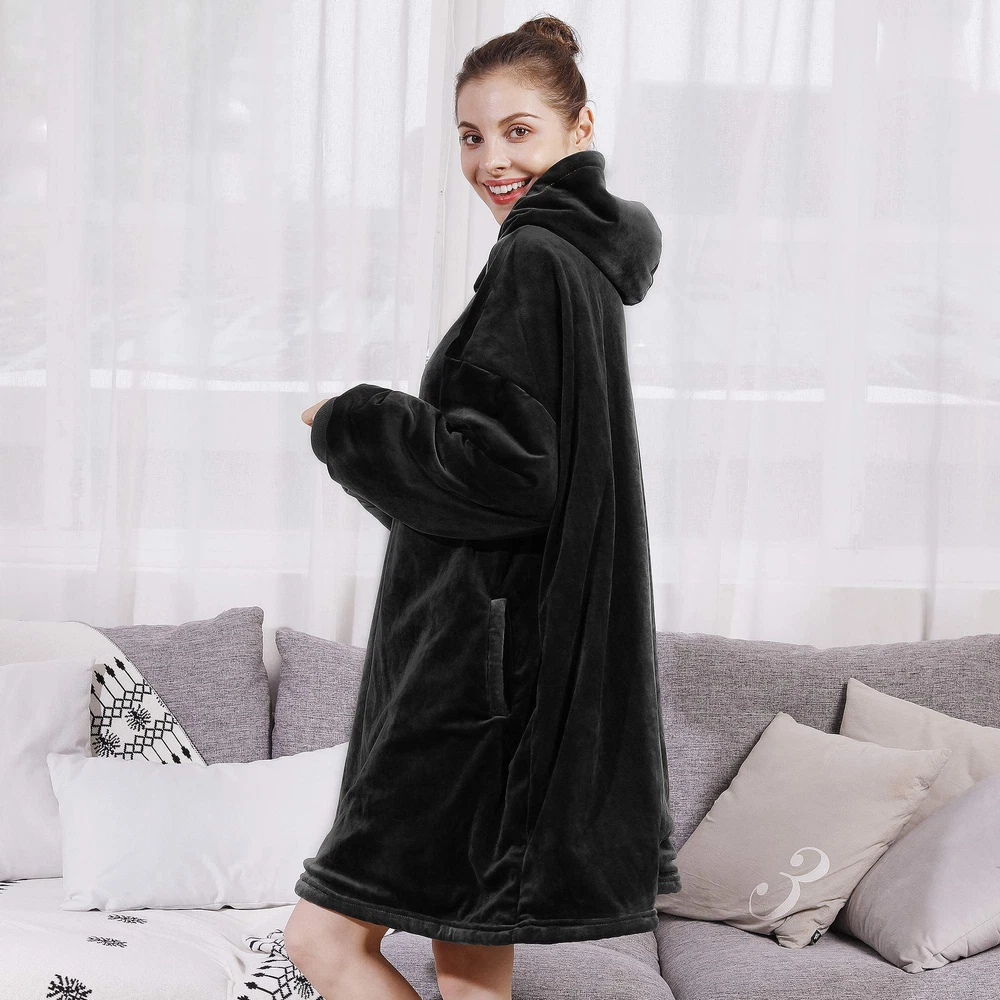 [Autumn Winter Essentials]- Are you still afraid to go out because of the cold? With this blanket sweatshirt, you can say goodbye to the cold. Because our sweatshirt blanket is made with super soft microfiber fleece on the front and Sherpa lining on the other. While providing you with warmth, let you free yourself without hindrance. [Multifunctional Purpose]- The blanket sweater is not limited to indoor reading, watching TV, blanket sweater can be used for outdoor sports, sports events, camping, beaches and almost any place and used as school uniforms, girlfriends clothes, couples clothes, parent-child clothes, warm pajamas. In this way, you can share warmth and joy with your friends, lovers, and family together. [Moving Wearable Blanket]- The wearable blanket adult is equipped with giant front pockets that can store your mobile devices, such as phone, remote controls, also snacks. The blanket with sleeves, oversized hood, elastic cuffs and wide neck design which allow you to move your limbs and body easily. It can be used as girlfriend gifts, boyfriend gifts, wife gifts, husband gifts, best friend gifts, business partner gifts, kids wearable blankets gifts and so on. [One Size Multi Color Fit All]- Our hooded blanket is one size for adults and teenagers, but hooded blanket has different colors optional. Both men and women are suitable. Welcome to buy, please refer to the product details for specific colors, there is always a color for you. It is the best gifts choice, can be birthday gift, funny gifts, cute gifts, unique gifts, gag gifts, anniversary gifts, sloth gifts. [Washing Instructions]- Hand wash or machine wash with cold water. Wash separately before using blanket sweatshirt for the first time. At important festivals or moments, sweatshirt blanket fleecehug hoodie is the best choice for College gifts, Christmas day gifts, Thanksgiving day gifts, Valentines day gifts, Halloween day gifts, Mothers day gifts, Father day gifts. Let the warmth always be with everyone.