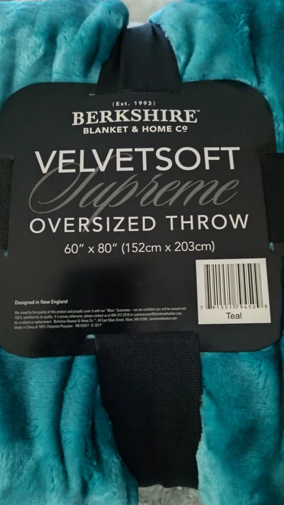 The oversized throw blanket measures 60x80 inches and is made of Berkshire Velvetsoft material in a calming teal color. It features a solid color pattern and is designed for use in any room. The blanket is machine washable for easy care and can be tumble dried. With its plush and velvety texture, the Berkshire Velvetsoft throw offers a cozy and luxurious addition to your bedding collection.