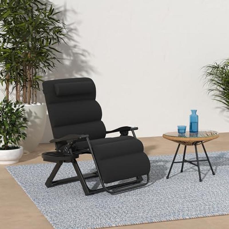 You may also like 2 Person Outdoor Patio Swing Glider Steel Bench Loveseat Rocker Smooth Gliding 104.48 USD 109.98 USD Free shipping 5% off 2 Pack Patio Chairs Armchair Folding Portable Sturdy Deck Backyard Outdoor Blue 61.69 USD 64.94 USD Free shipping 5% off About this item PLUSH REMOVABLE CUSHION: A soft linen cover comes with a set of zippers for easy removal and cleanup, while the plush cushion adds comfort WEATHER-FRIENDLY DESIGN: Durable textilene over a powder-coated steel frame supports up to 350 pounds, so you can lounge in peace with a convenient side tray, knowing this seat is ready for all seasons EXTRA-WIDE SEATING: Padded linen with flexible textilene conforms to your body, while an adjustable headrest helps relieve tension in the neck while lounging LOCKABLE RECLINING SYSTEM: An extra-wide seat smoothly glides into adjustable zero-gravity positions with a system of locks and elastic cords for extra support VERSATILE FOLDING RECLINER: Add this chair to your next day at home or outdoor excursion and turn any space into a private lounge; fold it flat for easy storage after use; OVERALL DIMENSIONS: 32. 5-63"(L) x 27"(W) x 33. 5-44. 5"(H); WEIGHT CAPACITY: 330 lbs. Brand:Best Choice Products Color:Onyx Black Product Dimensions:63"D x 27"W x 44. 5"H Size:63 Inch D x 27 Inch W x 44. 5 Inch H Back Style:Solid Back Material:Alloy Steel Item Weight:22. 1 Pounds Frame Material:Alloy Steel Seat Material Type:Linen You may also like Garden Scooter W/ Storage Bin & Pull Strap Kneeling Pad Light Taupe 8.5 Gallons 90.64 USD 95.41 USD Free shipping 5% off Water Stainless Circulation Pump Noise Vibration Reduction Manual Auto Switch Us 72.99 USD 76.83 USD Free shipping 5% off Sided Cooler Storage W/ Telescoping Handles Wheels Blue 34 hours 42 Cans Camping 44.76 USD 47.12 USD Free shipping 5% off Camping Chair W/ Built-In 4 Can Cooler Cup Holder Lightweight BBQ Picnic Outdoor 57.7 USD 60.74 USD Free shipping 5% off 2Pcs 2-ply Jumbo Roll Dispnsr Bath Tissue Toilet Paper Bathroom-Tissue Unscented 47.57 USD 50.07 USD Free shipping 5% off 20 Pack 5 Qt Storage Bin Container W/ Lids Stackable Totes Durable Plastic Clear 29.34 USD 30.88 USD Free shipping 5% off High Protein Natural Kitten Food Real Chicken DHA Antioxidants 7 Lb Kibble New 24.17 USD 25.44 USD Free shipping 5% off Portable Canister Vacuums Cleaner Carpet Floor Care Upholstery Self-cleaning New 78.76 USD 82.9 USD Free shipping 5% off Chicken Wet Cat Food Grain-Free 25 Essential Vitamins & Minerals Kittens 24 Pack 51.0 USD 53.68 USD Free shipping 5% off 19 Piece 3/8 In Drive Ratchet & Socket Set Workshop Garage W/ Reusable Rails New 29.17 USD 30.71 USD Free shipping 5% off 48" Single-Door Dog Crate Divider Panel Durable Sturdy Folding Metal Indoor New 136.79 USD 143.99 USD Free shipping 5% off 29" Contemporary White/Gold Terrazzo Table Lamp Modern Ceramic W/ Metal Accents 114.3 USD 120.32 USD Free shipping 5% off