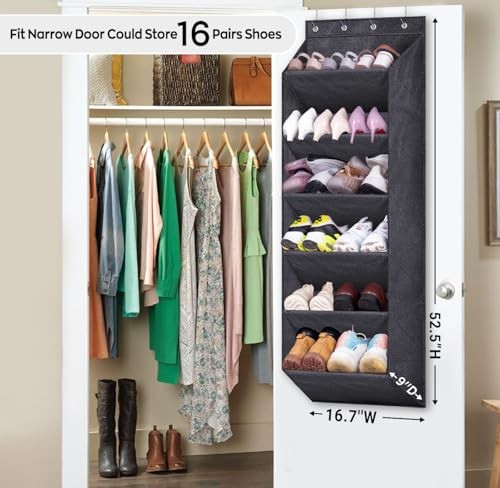 Return Policy Fast Delivery Trusted seller Shoe Rack for Door with Large Deep Pocket, Hanging Door Shoe Organizer for Closet Hanger, Dorm and Narrow Door Storage Shoe Holder, Black Product Description 【FIT NARROW DOOR & WITH LARGE CAPACITY】: This over the door shoe organizer could hold 16 pairs shoes at most and the size is 52.5"L x 16.7"W x 9"D which more fit the narrow door, like the closet, dorm and RV to take less space; 【9'' DEEP POCKET】Each hanging shoe rack for closet has 9'' depth that could contain size 13 men shoes or size 12 boots without sagging or stretching, even the shelf is enough to put two pairs of size 10 sneakers or tennis shoes together; 【NO SQUEEZING & DURABLE OXFORD】: The sturdy fiber tubes could prevent over the door shoe rack from squeezing and avoid deformation and enhance the stability of the pockets. It's made of high-quality oxford fabric which have great tear resistance and much more sturdy than ordinary mesh or non-woven pockets; 【EASY TO TAKE OUT DOOR SHOE RACK】The special up opening design is convenient for you take and the deep slot and both sides are closed could keep the shoes stay in the pocket without falling out; 【VERSATILE USAGE】Hanging shoe storage back of door not only for shoes, but also for bathroom stuff, hair products, hats, scarves, gloves, toys, toilet paper, water bottles, snacks and it can be hung in cruise, rv, wardrobe, pantry door, laundry room. etc. Shipping Returns Payment Shipping Shipping is FREE to all addresses other than APO/PO boxes in the lower 48 states. All our stock ships from US-based warehouses. Shipped via USPS or UPS (depending on location and package weight) Unless stated otherwise, all orders will ship within 24-72 hours of your payment being processed. Check our feedback to see the great reviews of FAST shipping we offer. Returns Seller does not accept returns Payment We currently accept payment via eBay managed payments only. Once payment is cleared, we will dispatch your shipment within 1-3 business days. Please refer to the "Shipping" tab for more information regarding shipping speed to your destination.