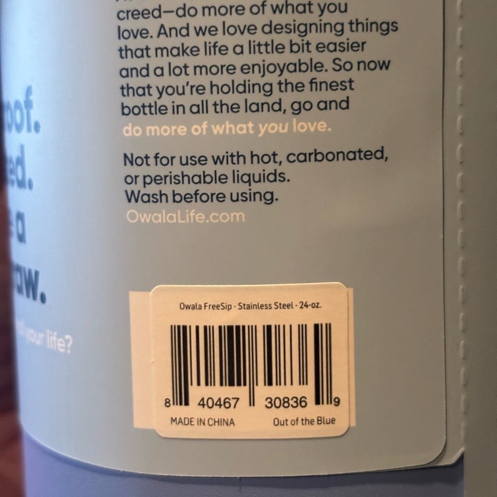 Stay hydrated in style with this Owala FreeSip insulated water bottle in the beautiful Out of the Blue colorway. Designed with Owala’s signature FreeSip spout, you can sip through the built-in straw or tilt to pour—your choice. ✔ Leak-proof locking lid ✔ Double-wall insulated to keep drinks cold for up to 24 hours ✔ BPA-free, durable stainless steel ✔ Built-in straw for easy sipping ✔ Compact 24 oz size—great for everyday use, gym, school, or travel Condition: New with original label attached Capacity: 24 oz / 710 mL Color: Out of the Blue A perfect blend of function and style—once you use an Owala, it’s hard to go back 💙