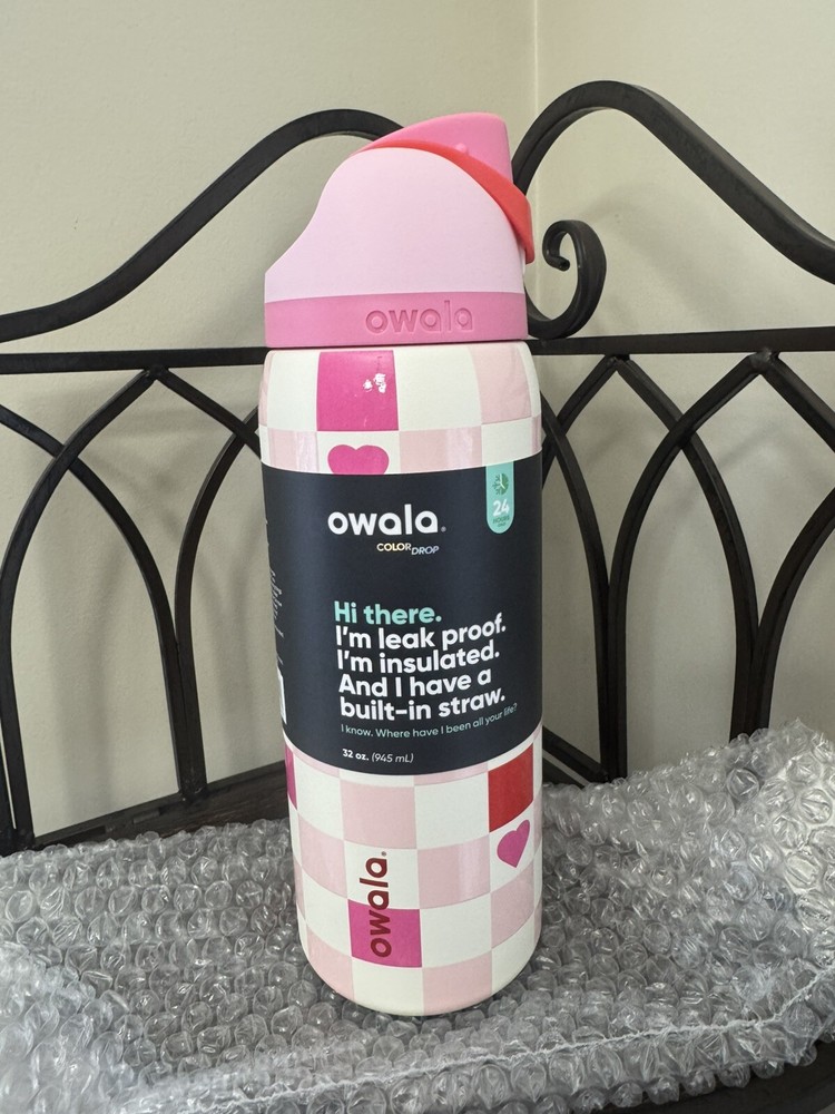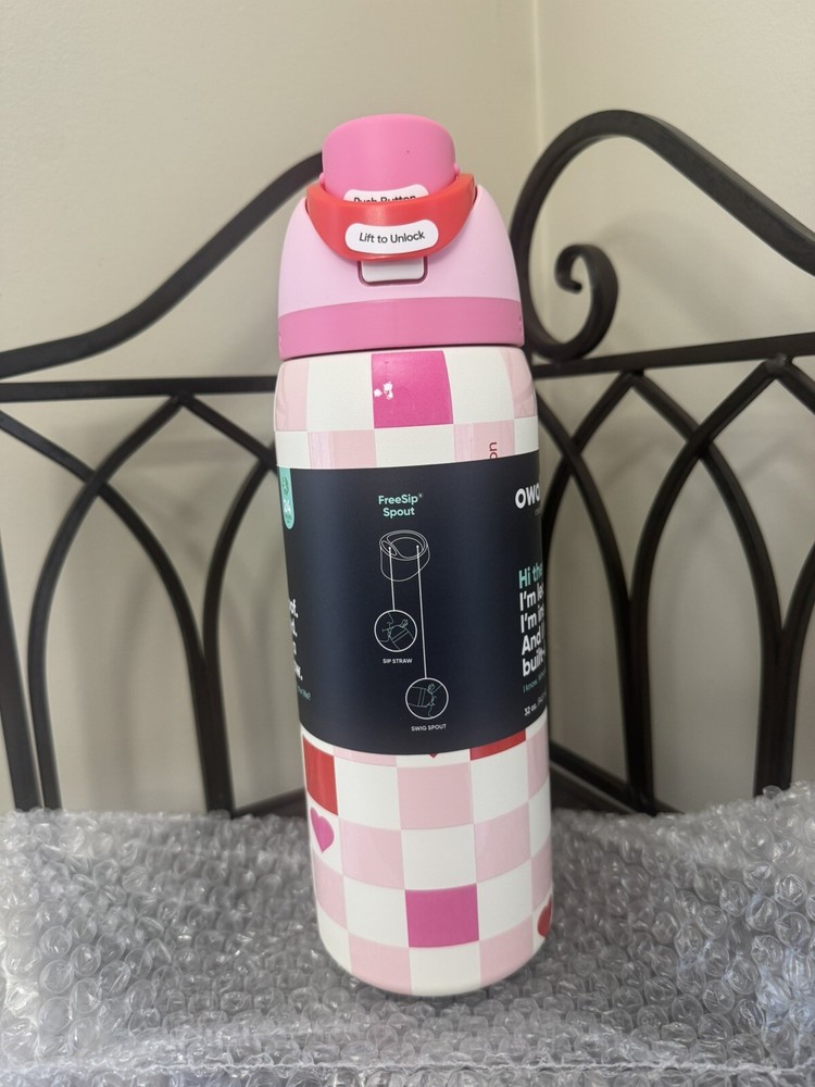 Get your hands on the limited edition Owala FreeSip water bottle, a must-have for any sports enthusiast or Valentine's Day gift recipient. This 32 fl oz stainless steel bottle comes in a striking pink color with a checkered theme, making it a unique addition to your collection. The bottle features a locking mechanism, flip top, and straw for easy access to your favorite beverage. The Owala FreeSip water bottle is BPA-free, phthalate-free, and dishwasher safe. It also comes with a child-resistant cap, making it a great choice for families. The double wall and vacuum wall construction ensure that your drink stays hot or cold for longer. This bottle is refillable, reusable, and car cup holder compatible for added convenience. With its lifetime manufacturer warranty, you can rest assured that this bottle will last you for years to come.