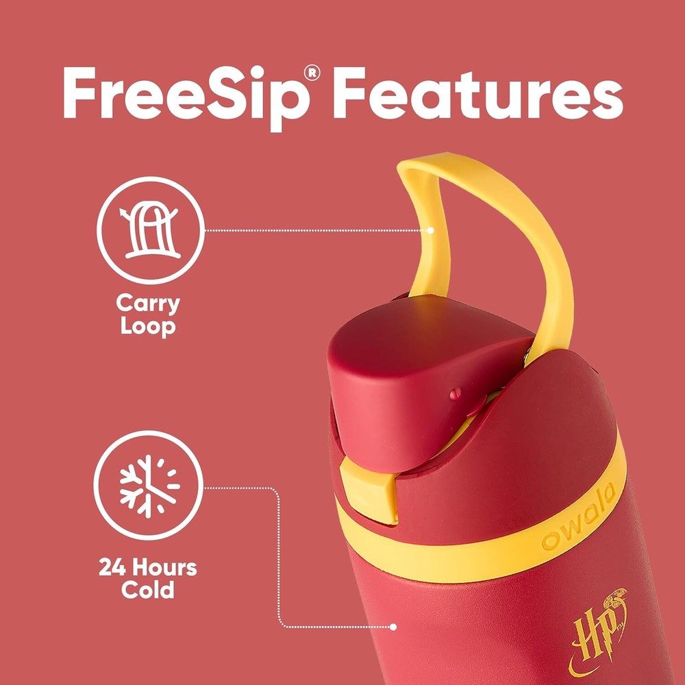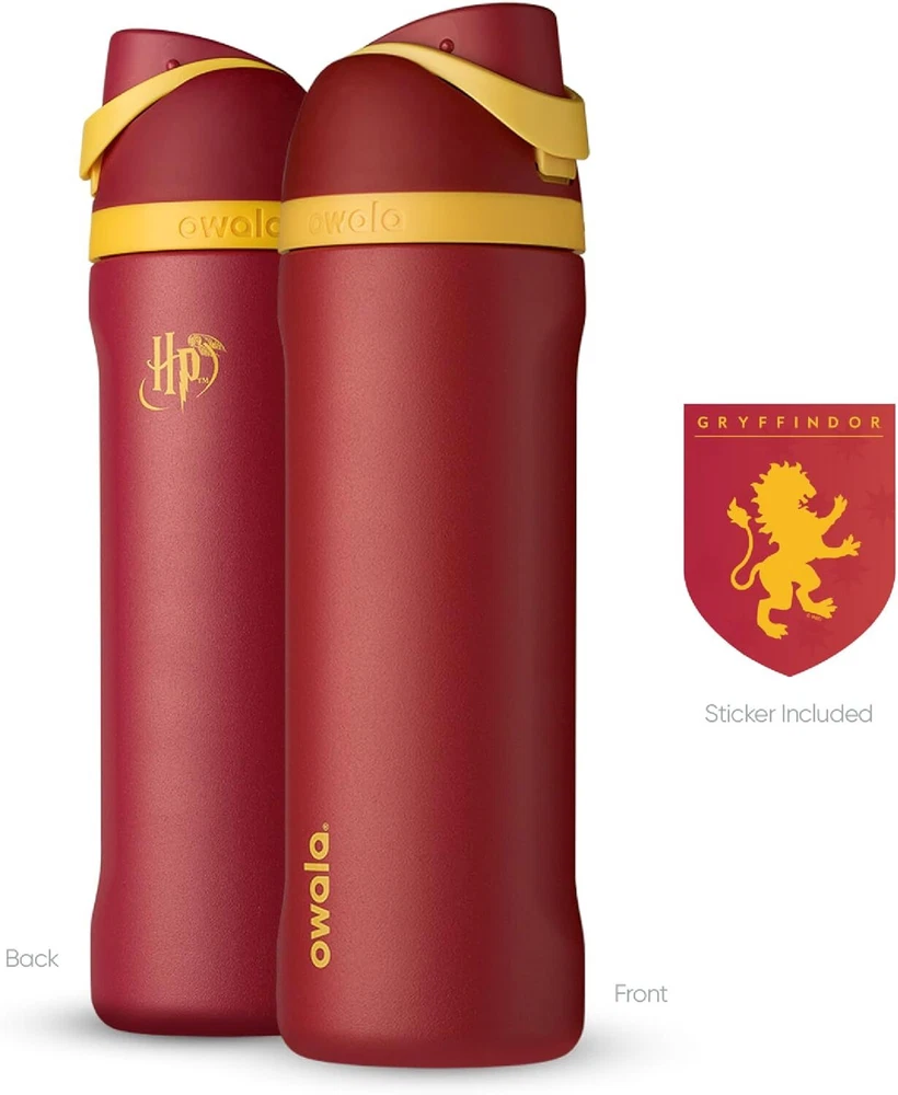 Owala Harry Potter FreeSip Insulated Stainless Steel Water Bottle Gryffindor Product Details Brand: Owala Capacity: 24 Fluid Ounces Color: Gryffindor Recommended Uses For Product: Travel Special Feature: Insulated,Straw 24-ounce insulated stainless-steel FreeSip spout water bottle with Harry Potter houses Patented FreeSip spout designed for either sipping upright through the built-in straw or tilting back to swig from the spout opening Protective push-to-open lid keeps spout clean; convenient carry loop doubles as a lock Double-wall insulation keeps drinks cold for up to 24 hours; wide opening for cleaning and adding ice; cup holder-friendly base BPA, lead, and phthalate-free; hand wash cup, dishwasher-safe lid; not for use with hot liquids