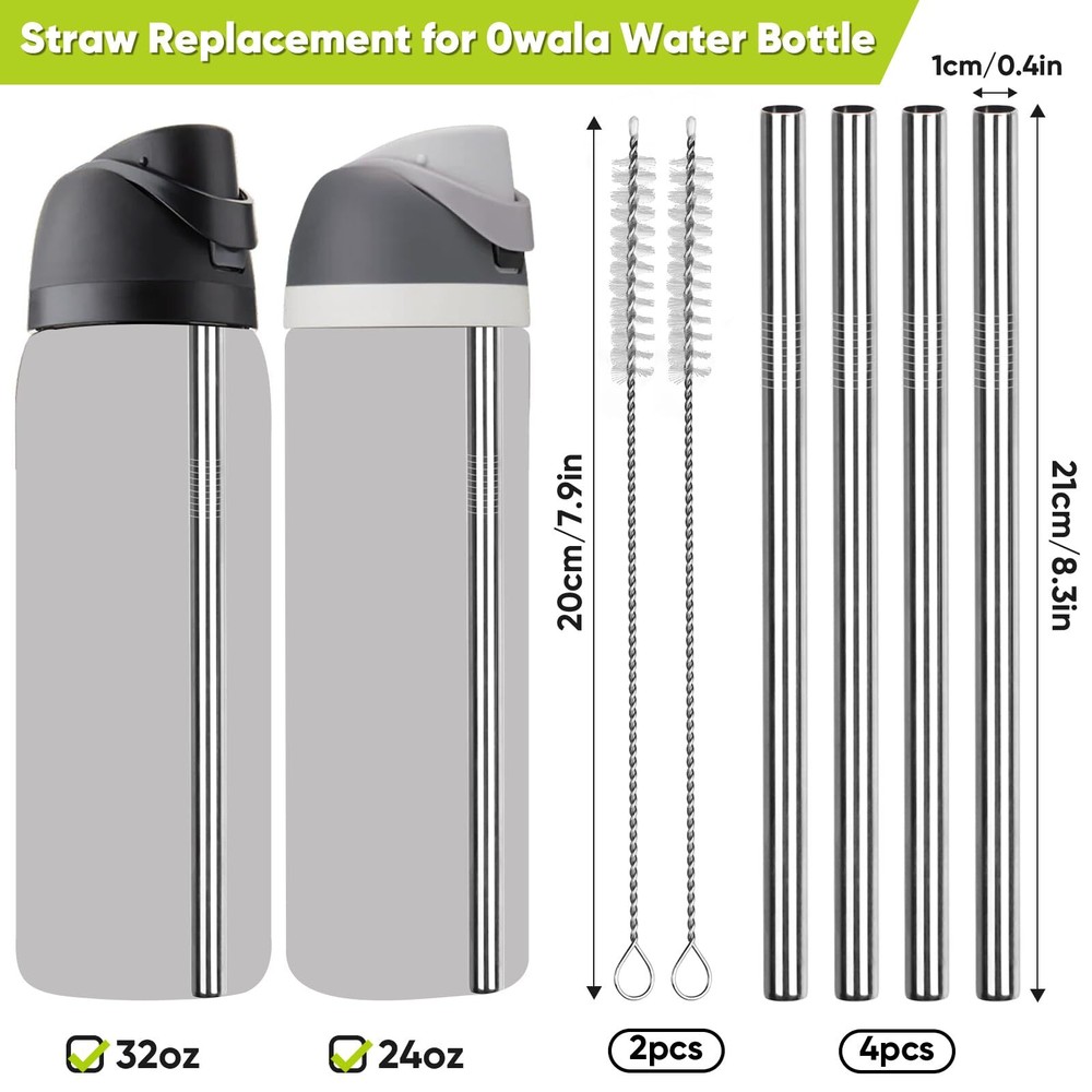 Replacement Stainless Steel Straws for Owala Water Bottle (4-Pack, 21x1cm) + 2 C Replacement Straw Set: 4 21×1CM stainless steel replacement straws with 2 cleaning brushes High-Quality Materials: Our straws are made of high-quality 304 stainless steel, which is durable and corrosion-resistant, and more environmentally friendly than plastic straws Easy to Clean: Our straws come with a cleaning brush and can be hand or machine washed, making it easy to clean stains Compatibility: Our straws are suitable for Owala Water Bottle 24 oz 32 oz straw replacement, please confirm the size before purchase Intimate after-sales: If you have any questions or problems with our straws, you can contact our customer service and we will solve them for you as soon as possible Shipping We offer FREE shipping on all orders! We ship within Three business days of payment, usually sooner. We use a selection of shipping services such as UPS, FedEx, USPS etc. We only ship to the lower 48 states, no APO/FPO addresses or PO Boxes allowed. Local pickups and combined shipping options are not provided at this time. Return You can return a product for up to 30 days from the date you purchased it. Any product you return must be in the same condition you received it and in the original packaging. Please keep the receipt. Payment We accept payment by any of the following methods: PayPal Please pay as soon as possible after winning an auction, as that will allow us to post your item to you sooner! Feedback Customer satisfaction is very important to us. If you have any problem with your order, please contact us and we will do our best to make you satisfied. Contact Us If you have any queries, please contact us via ebay. We usually respond within 24 hours on weekdays. Please visit our eBay store to check out other items for sale! Thank you for shopping at our store.