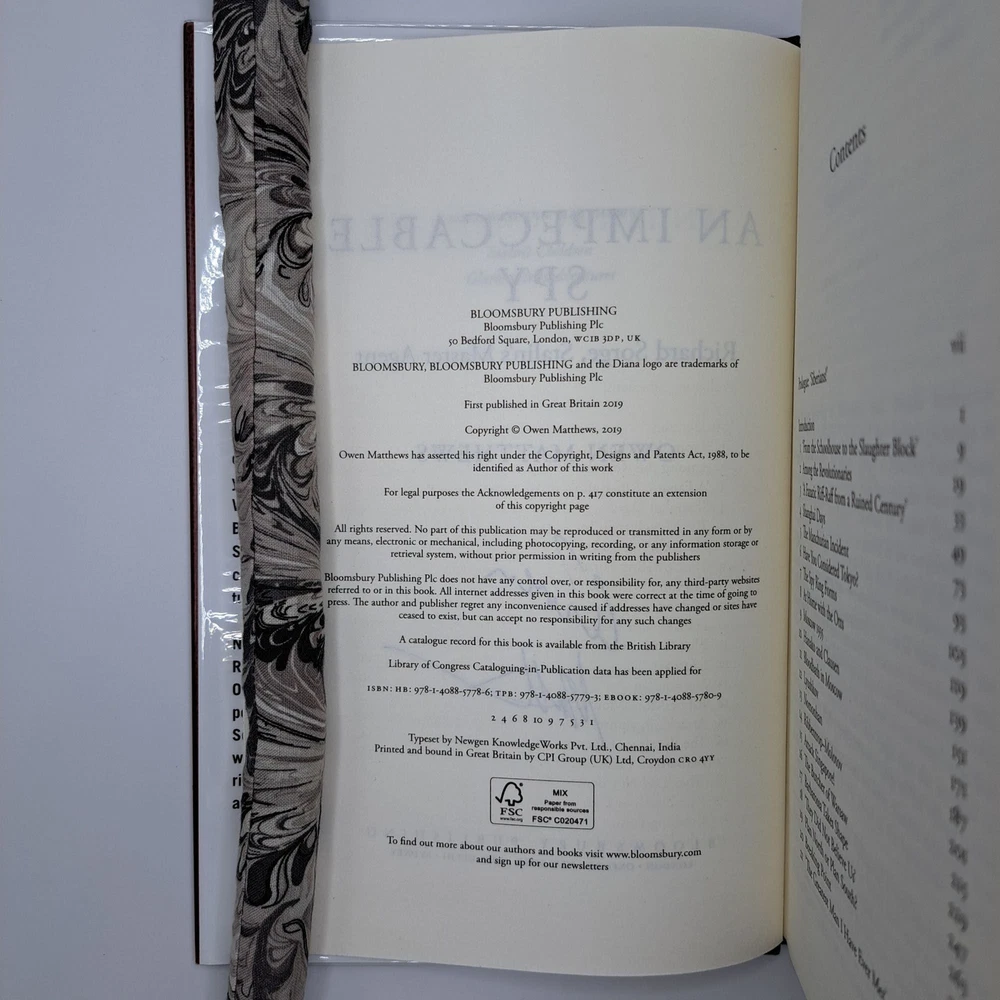 AN IMPECCABLE SPY [Signed] Author: Matthews, Owen Title: AN IMPECCABLE SPY [Signed] Publication: London, UK: Bloomsbury, 2019 Edition: First Edition, First Printing Description: Octavo, 435 pages. In Near Fine condition with a Near Fine dust jacket. Red spine with white text. Dust jacket protected by mylar covering, price uncut '£25.00'. Dust jacket shows minor wear upper rear corner. Boards show minor wear on upper rear corner and tail edge corners of spine. Signed flat by Owen Matthews on title page. Shelved in Hallway. Seller ID: 1389417 Subject: European History, Warfare and Conflict, World History Welcome to the eBay store of Second Story Books! DC's Oldest Rare and Used Bookstore, Second Story Books operates two open shops in the Washington D.C. metropolitan area. We have an extensive internet presence and provide accredited appraisals member ASA. This listing was created by Bibliopolis.