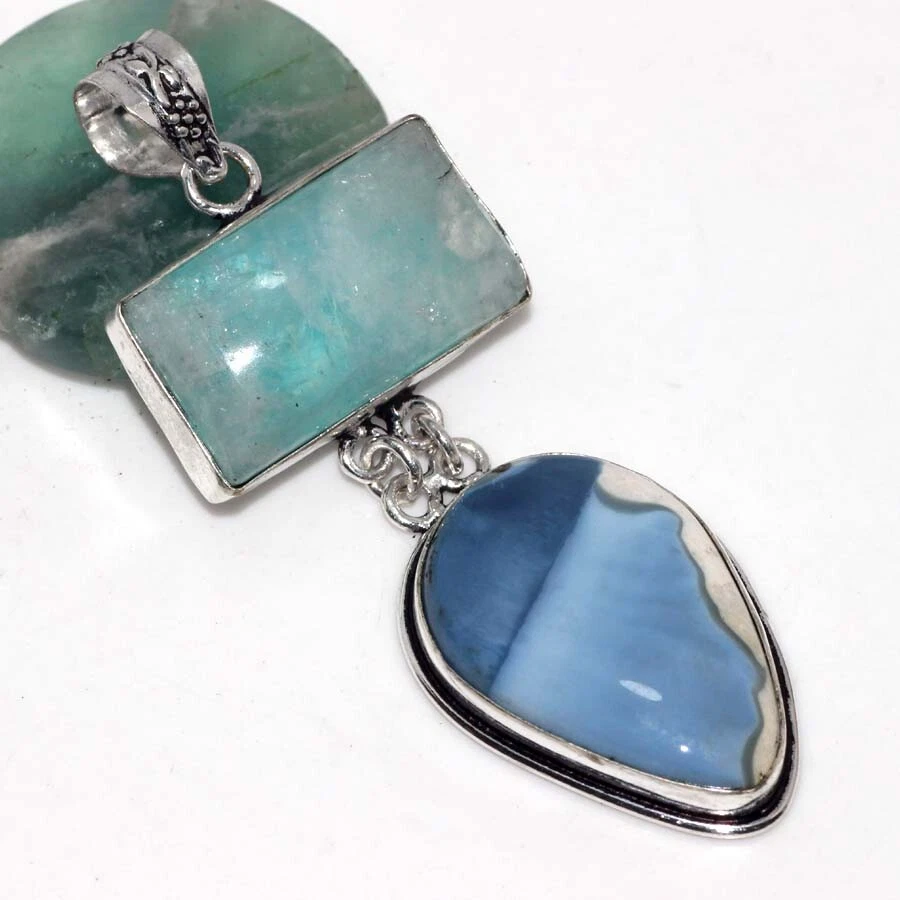 Owhyee Blue Opal Rainbow Moonstone Pendant 2.6" Aesthetic Jewellery JW