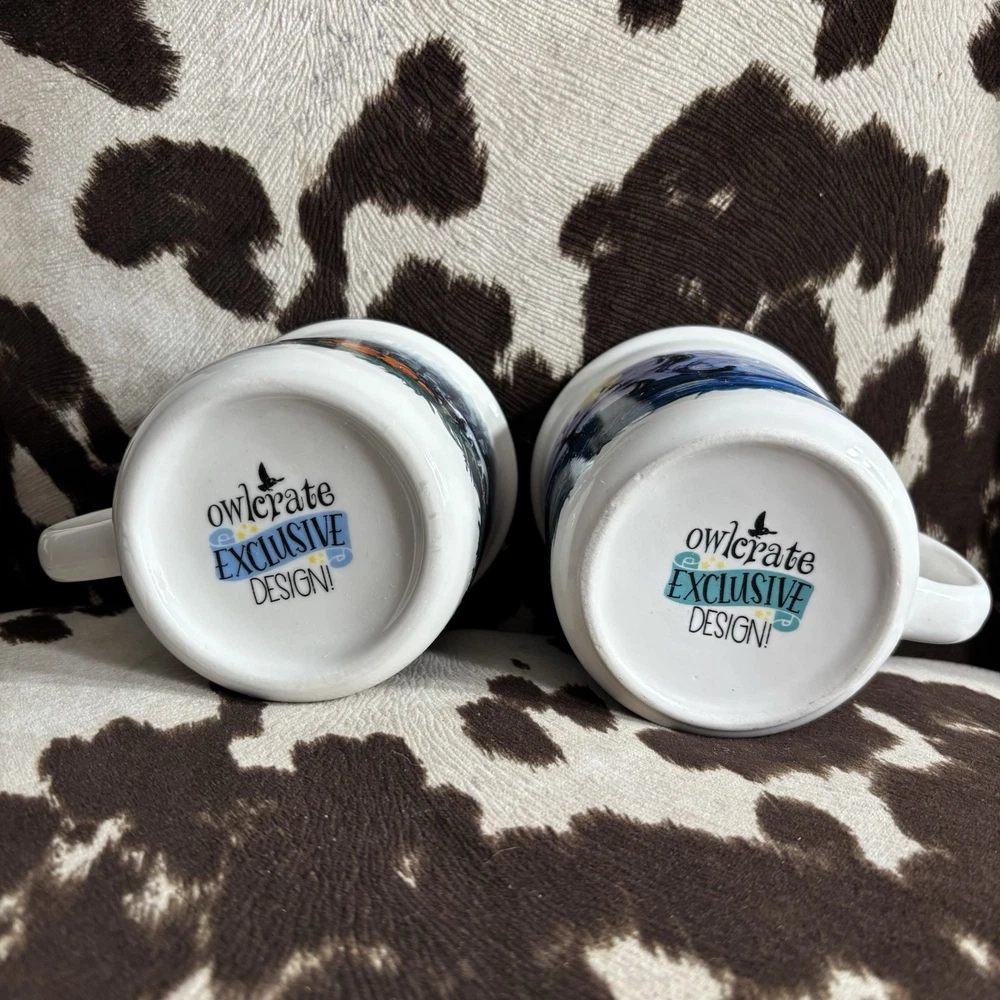 Owlcrate Exclusive Designs Cara Kozik Harry Potter Mugs Set of 2 Includes 2 mugs in good-excellent overall condition. Includes: -Forbidden Forest Owlcrate Exclusive Designs mug by Cara Kozik (great condition, no chipping or fading to top or design of mug, ware to bottom). -I Solemnly Swear… Owlcrate Exclusive Designs mug by Cara Kozik (great condition, no chipping or fading to top or design of mug, ware to bottom). Hard to find designs no longer sold.