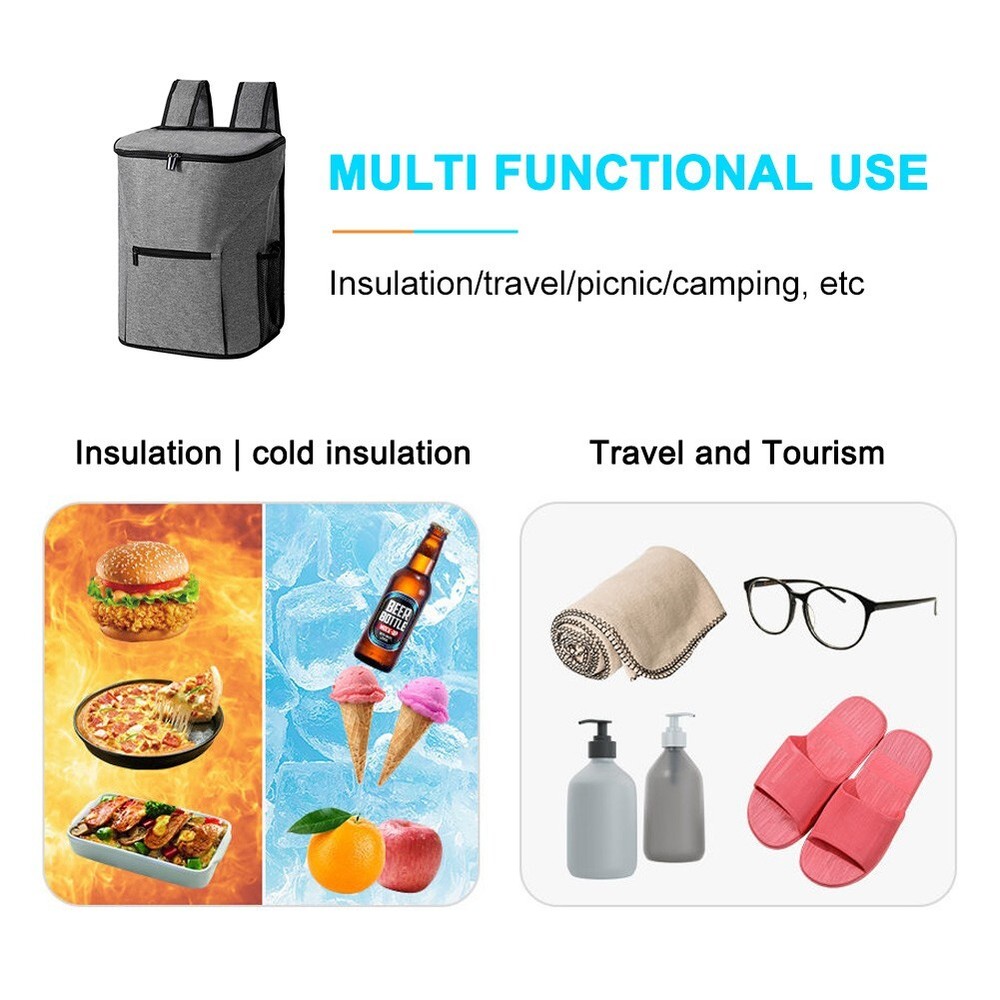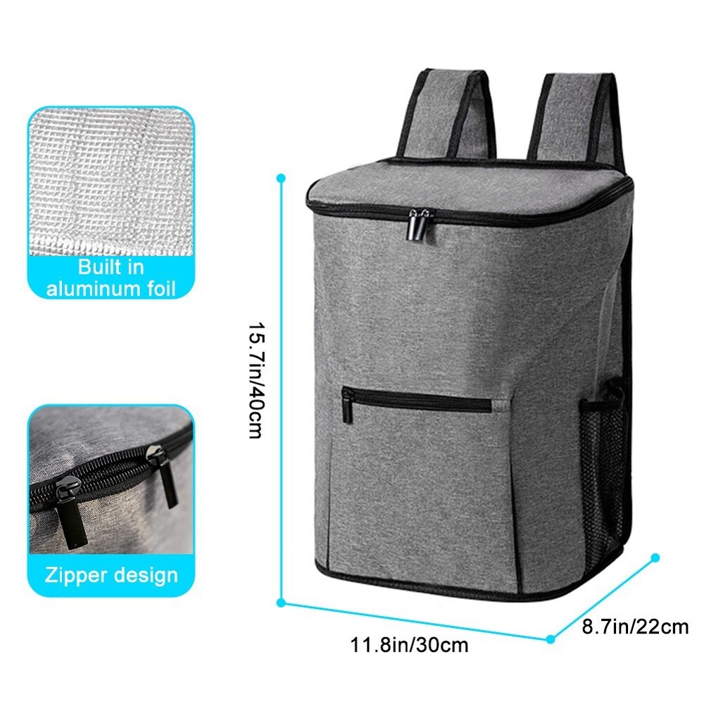 Specifications: Material: Nylon + PEVA Optional Color: Gray Closure: Zipper Gender: Unisex / Men / Women Style: Simplicity Occasion: Picnic, hiking, camping, sports, park, beach, outdoor activities etc. Features: · Large-Capacity Insulated Backpack Cooler: This insulated cooler backpack offers a great cold retention to keep your drinks and food cold. It is great for hiking, camping, picnic, beach activities and so on outdoor activities to keep your items chilled. · Water-Resistant Nylon Fabric & Stain-Resistant Insulated Liner: The backpack is made of high-density and water-resistant nylon fabric, smooth and comfy to the touch. It is padded that comfy to wear and has a smooth anti-leak PEVA lining that easy to wipe clean. · Zippered Front Pocket & 2 Mesh Side Pockets: The insulated backpack has extra 1 zippered front pocket and 2 mesh side pockets with elastic cuffs for extra storage space for quick access. · Adjustable Shoulder Strap: Adjustable shoulder straps provide a custom fit and the straps are padded and meshed for more wearing comfort. · Convenient 2-Way Zipper Closure & Wide Opening Design: 2-way zipper closure makes it convenient to open and close. Wide opening design allows easy loading and unloading. Notes: * Due to effect of light, camera and monitors, the item’s real color may be slightly different. * Allow slight dimension difference due to manual measurement. * Thank you for your kindly understanding. Package Includes: 1 PC Insulated Backpack (Others are NOT included)