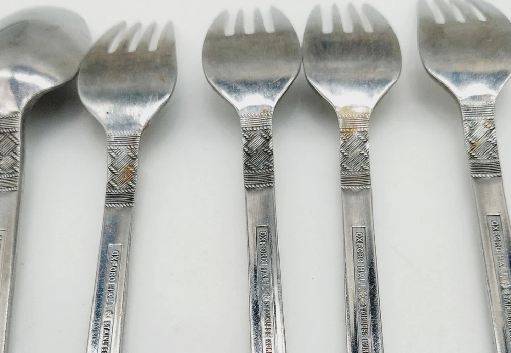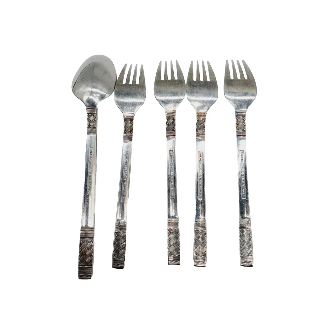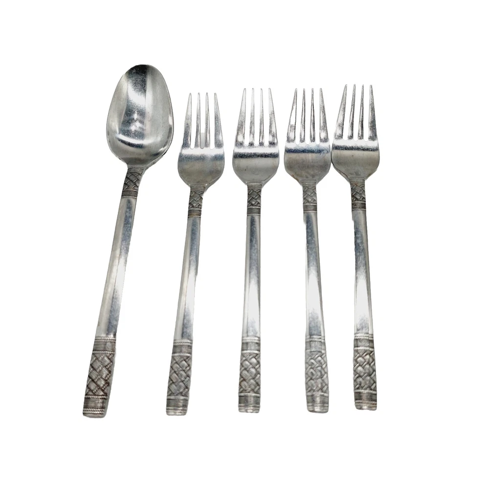 Oxford Hall Stainless Steel Korea Weave Pattern 1 Spoon 4 Forks Lot Of 5 READ