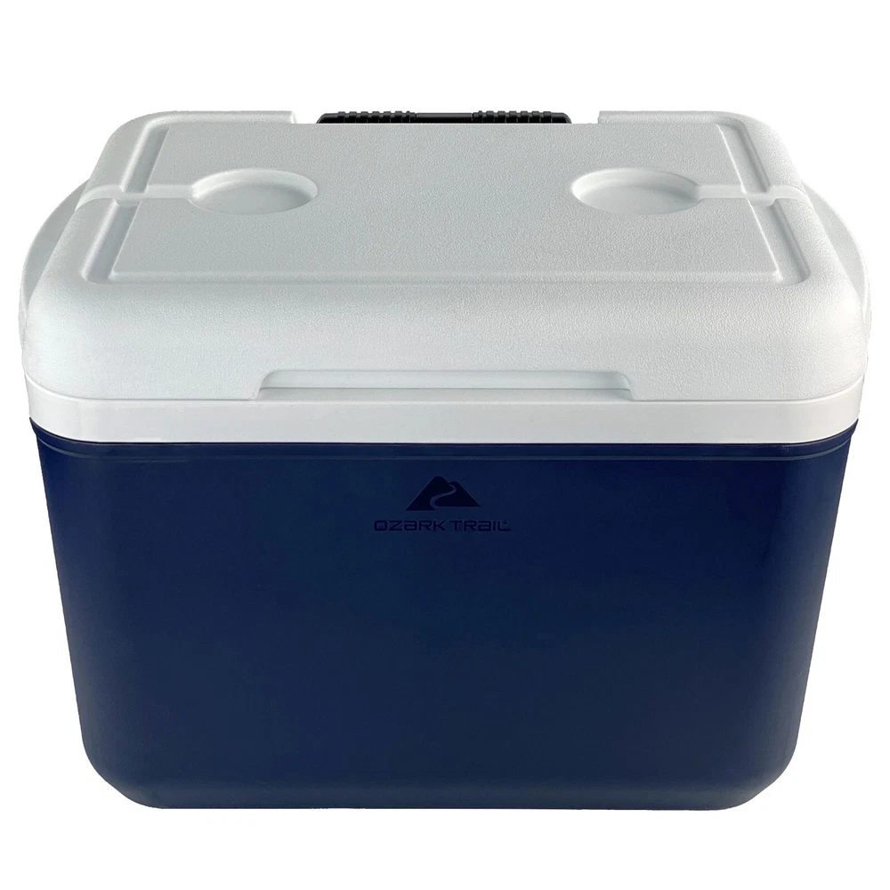 Ozark Trail 30 Quart Hard Side Wheeled Cooler, 42-Can Capacity, Blue Start your adventure outdoors off right with the Ozark Trail 30 Quart hard-side rolling cooler. With a telescopic wheel system, This 30 QT cooler is easy to roll to any event. With thick insulation your snacks and beverages will stay cool until you're ready to enjoy. This cooler features a 28-Liter storage capacity that holds up to 42 (12-oz) cans. Keep your beverages close by with the molded cup holders on the lid of the cooler. This Ozark Trail 30-quart cooler is made with a minimum of 25% post-consumer recycled plastic. Adventure is where memories are made, whether it's campouts in the backyard with the kids, Saturdays at the river with friends, or a week in the wilderness alone. Ozark Trail helps you and your family create everyday adventures with gear and accessories built with you in mind. From backpacks to tents, they're rugged and dependable. Because adventure is not a destination; it's a lifestyle. Ozark Trail 30 Quart Rolling Cooler 42-Can Capacity For best storage results, stack cans in vertically first, then horizontal along the top layer. Apply ice on top until the cooler fills to the top. Telescopic Handle and Wheel System Dual Side Carry Handles Dual molded Lid Cup Holders Made with a minimum of 25% post-consumer recycled plastic Features No features description available Brand Ozark Trail Manufacturer Part Number OT-30Q-US-R Color Blue Assembled Product Weight 7.5 lb Assembled Product Dimensions (L x W x H) 20.00 x 14.10 x 15.11 Inches