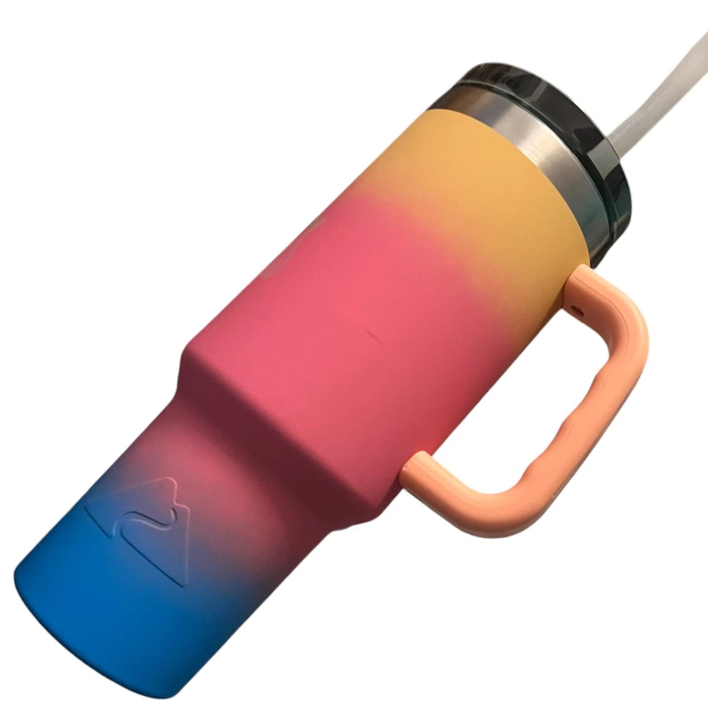 Ozark Trail 40 oz Vacuum Insulated Stainless Steel Gradient Tumbler Laser Carved Description: Stay hydrated with the Ozark Trail 40 oz Vacuum Insulated Stainless Steel Tumbler. This high-quality tumbler features a vibrant gradient finish with intricately laser-carved designs, ensuring a unique and attractive look. Designed for hot and cold beverages, its vacuum insulation keeps drinks at the perfect temperature for hours. Key Features: • Capacity: 40 oz, perfect for long trips or daily hydration. • Material: Durable stainless steel construction. • Insulation: Vacuum insulated to keep drinks cold or hot for extended periods. • Gradient Design: Stylish ombre finish with laser-carved designs for added appeal. • Handle: Comfortable integrated handle for easy carrying. • Lid & Straw: This product includes a tight-seal lid and reusable straw for spill-proof use. Condition: Unused, like-new condition. No original packaging.