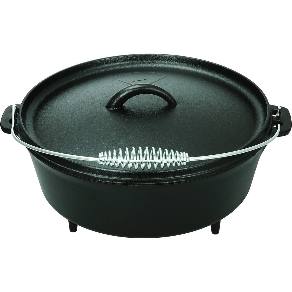 This convenient campsite cooking item weighs 10 pounds from its durable cast iron construction, is pre-seasoned to give your food a unique and hearty flavor, and works to evenly distribute heat to the food inside for uniform cooking. Plus, its sturdy cast iron material allows it to be used in the oven, on the stovetop, and over an open fire to provide you with the versatility you need in your home and campsite cooking. Whether you want to bake, fry, or stew, the Ozark Trail Cast Iron Dutch Oven will do the job. Ozark Trail 5qt Pre-Seasoned Nonstick Cast Iron Dutch Oven with Spiral Bail Handle DURABILITY - Made from sturdy cast iron material, ensuring years of reliable use DELICIOUS - Pre-seasoned for a unique and hearty flavor in your meals EASY GRIP - Features a stainless steel spiral bail handle for easy transport VERSATILE - Ideal for campers cooking over an open fire or for use in the oven and on the stovetop HAND WASH ONLY - for optimal care and longevity of the product