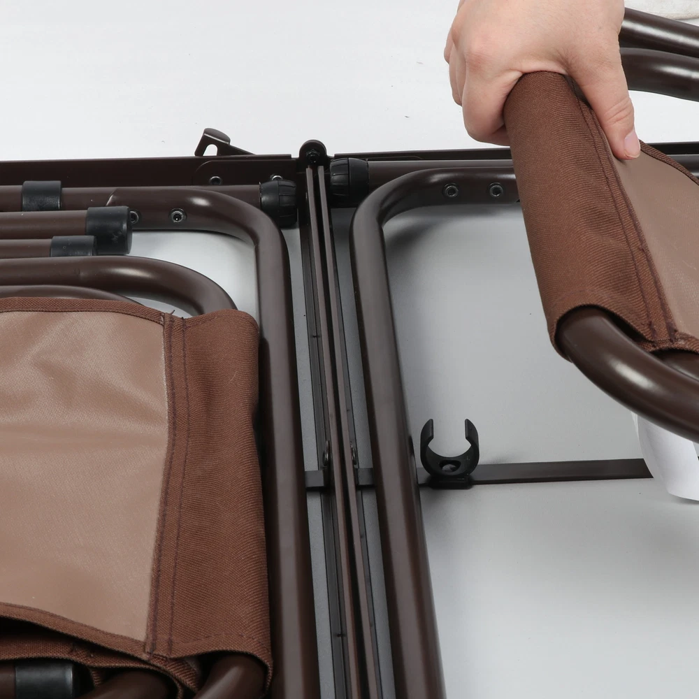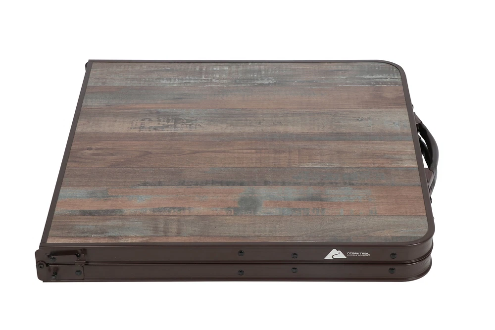 Product details Keep a portable and durable table and chairs handy on your next campout or backyard party with the Ozark Trail Durable Steel and Aluminum Table Set with Stools. The table has a heat-resistant and easy-to-clean MDF table top, while the steel legs on the table and chairs are coated for resistance to chips, scratches, and corrosion. Sit and comfort on the stools, made with a durable polyester fabric and coated to be water and weather-resistant for season after season of use. The convenient pack and carry design makes it easy to move and put out of the way. Enjoy the great outdoors and great company with the Ozark Trail Durable Steel and Aluminum Table Set with Stools. " Table: 47.2 x 23.6 x 21/ 24/ 27.25 chair: 16.5 x 12.5 x 15" Ozark Trail Camping Table, Brown: Fabric: 600D polyester fabric with PVC coating for weather and moisture resistance Three Table Heights (inches): 21", 24", and 27.25" Table Dimensions (at tallest height): 47.2" x 23.6" x 27.25" Stool Dimensions (inches): 10.6" x 7.8" x 14.1" Table top: Heat-resistant and easy-to-clean MDF table top board in wood grain design Durable steel frame with powder coating for resistance to chips, scratches, and corrosion Convenient pack and carry design for easy moving and storage Weight Capacity (lbs.): Table 110 lbs.; Stool 300 lbs. Specifications Features Foldable, Portable Assembled Product Dimensions (L x W x H) 47.20 x 23.60 x 27.25 Inches On Nov 13, 2024 at 09:43:21 PST, seller added the following information: On Jan 2, 2025 at 18:12:09 PST, seller added the following information: