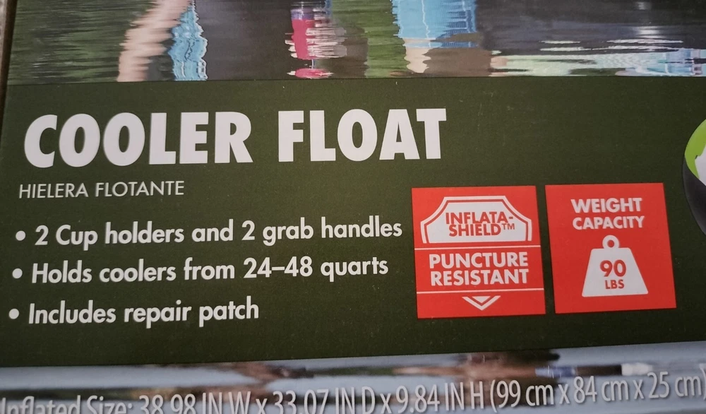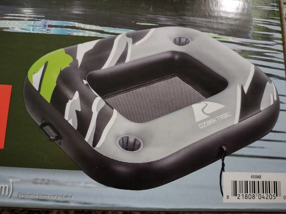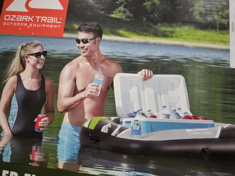 Ozark Trail Inflatable Cooler Float Holds 24-48 Quart Coolers The Ozark Trail Cooler Float is great for your next adventure out on the water. This cooler float is perfect for drifting down the river, around the lake or in the ocean while keeping your favorite beverages and snacks within arm’s reach. The float is constructed with Inflata-Shield™ material that prevents puncture and overstretching. The heavy-duty handles make it easy to carry the float from your car to the water. The float holds coolers between 24-48 quarts and has 2 built-in cup holders, so your favorite beverage is always close by! Great for the lake, river or ocean, you’ll want to be in on the fun the unisex Ozark Trail Cooler Float guarantees! • Inflated Size: 39 in. x 33 in. x 9.8 in. / 99 cm x 84 cm x 25 cm • Multicolor float with 2 cup holders and heavy-duty handles • Fits coolers 24-48 quarts • Attached grab rope for convenience • Contents: 1 cooler float, 1 repair patch Happy to combine shipping with other items. Thank You for looking!