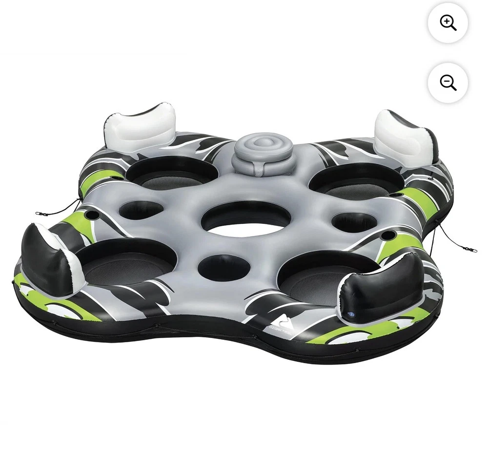 Experience the ultimate fun on the water with the Ozark Trail Rapid Rider IV Quadruple River Tube. This rectangular-shaped tube is designed for quadruple the adventure, with built-in coolers and cupholders to keep your drinks and snacks chilled while you enjoy the ride. Made by Ozark Trail, a trusted brand in outdoor products, this river tube is perfect for kayaking, canoeing, and rafting enthusiasts. With its sturdy construction and ample size, you can invite your friends and family to join you on an unforgettable water adventure. Get ready to ride the rapids in style with the Ozark Trail Rapid Rider IV Quadruple River Tube.