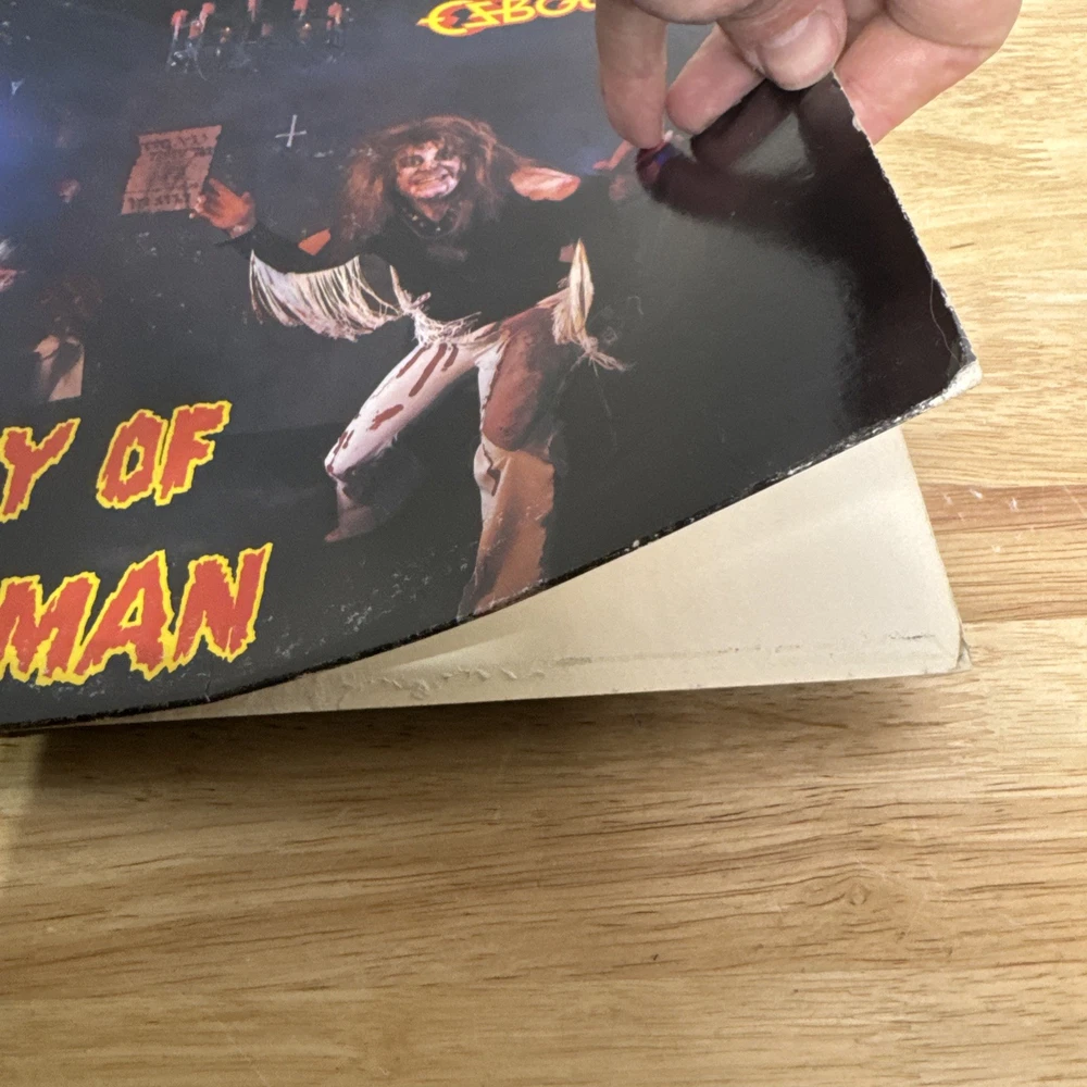 Vintage Ozzy Osbourne vinyl record. Cardboard sleeve and inner sleeve have some damage. On the cardboard sleeve there is heavy wear around the edges and the bottom edge is about half included. The inner paper sleeve is ripped and worn. Vinyl record is in good condition with no major scratches. Fast one day handling. Shipped via USPS media mail. Unsatisfied for any reason? 30 day return policy offered with no questions asked. Thanks for looking!