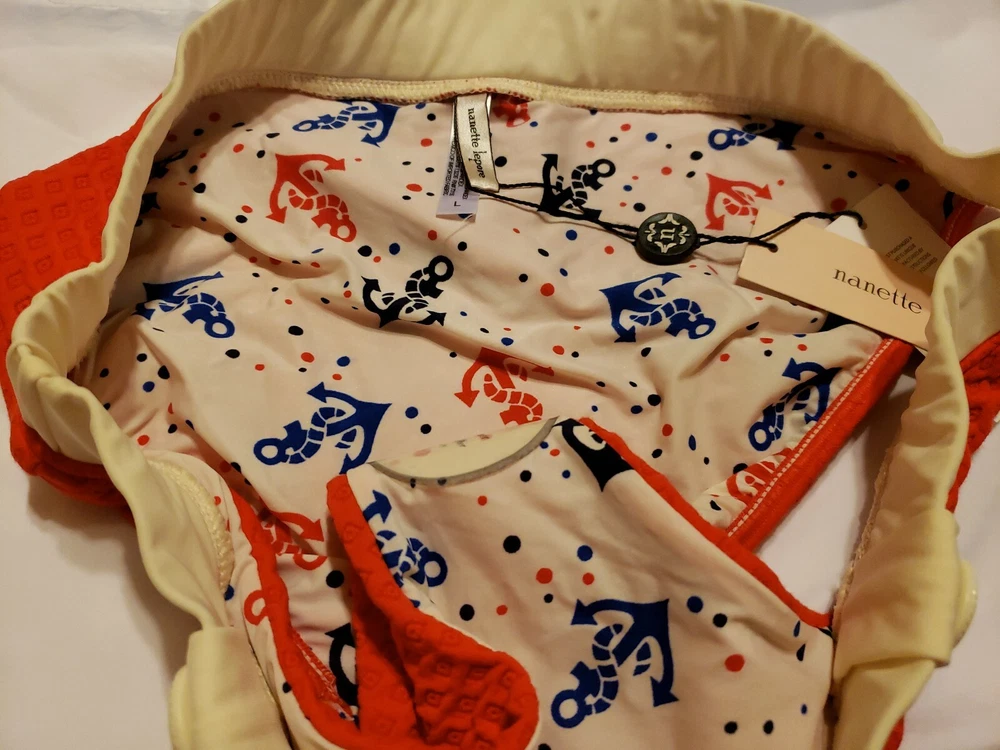 Swim Bottom Style: Swim Brief Size: L Brand: Nanette Lepore Department: Women Theme: Nautical Vintage: No Features: Lined Type: Bikini Color: Red Size Type: Regular