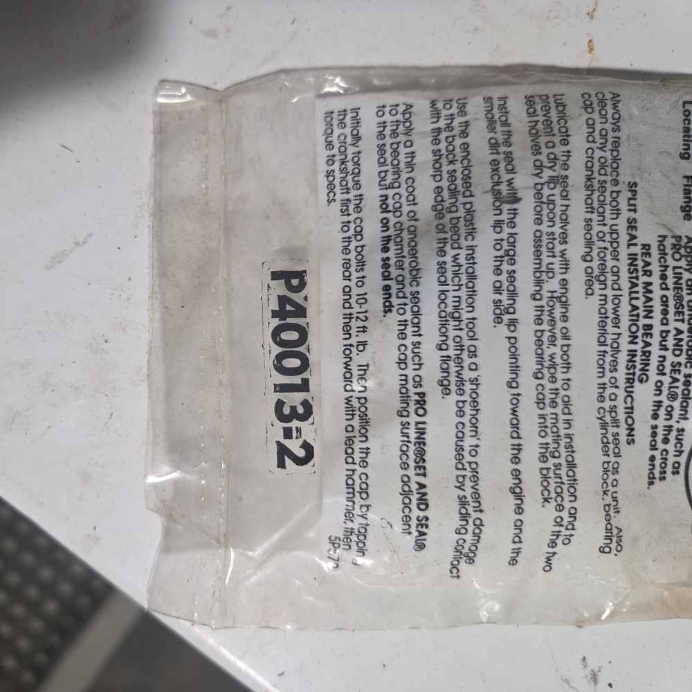 The # P40013-2 NEW Fel-Pro Rear Main Bearing Seal is a high-quality seal designed specifically for marine engines. Manufactured by Fel-Pro, a trusted brand known for producing reliable engine parts, this rear main bearing seal ensures a secure and leak-free seal to protect the engine. With the manufacturer part number P40013-2, this seal is a perfect fit for boat owners looking to maintain the performance and longevity of their marine engines.