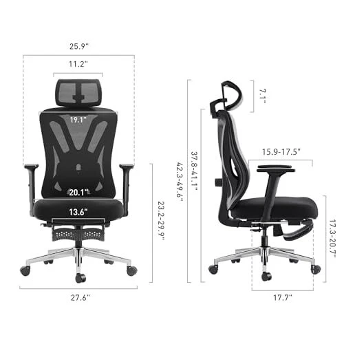Return Policy Fast Delivery Trusted seller P5 Ergonomic Office Chair, Desk Chair with Adjustable Lumbar Support and Height, Comfortable Mesh Computer Chair with Footrest 2D Headrest, Swivel Tilt Function Black Product Description 【Ergonomic Office Chair】The office chair is ergonomically designed to provide full support for your back, lumbar region, hips, and arms. It features an S-shaped desk chair backrest that perfectly conforms to your back, providing optimal support for your spine and enabling a comfortable and sedentary lifestyle. This ergonomic office chair enhances your sitting posture, allowing you to experience the utmost comfort even during busy workdays. 【Comfort & Ventilated】This office chair is comprised of a cushion with a 3.54-inch spring, memory foam, curved wooden boards, and black mesh covering. It has 16 independent springs and a 1.18-inch memory foam with just the right softness to maintain its shape even after extended use, and is as relaxing as a sofa. The breathable mesh fabric prevents sweating after prolonged sitting. The soft and highly flexible cushion spring will provide you lasting support through long periods of sitting. 【Relief Pressure】This office chair is equipped with adjustable armrests that can be raised or lowered, as well as adjusted up or down to cater to different desk heights and sitting positions. The design prevents arms from dangling in midair and shoulder stiffness after long periods of sitting and working. The office chair also takes up minimal space, making it suitable for the office, living room, study, conference room, and many other scenarios. 【Functional Adjustments】This office chair has an adjustable height range of 3.35" to adapt to people of any height. The backrest can recline up to 135° to provide you a relaxing posture for quick break. The waist can be adjusted up or down always conform to your lower back. The headrest has an adjustable height range of 3.94" and can swivel up to 40°. The adjustable features of this desk chair help to prevent injuries to your waist and neck, even after remaining seated for long periods of time. 【Reliable Customer Service】This office chair has passed SGS certification and BIFMA test, you can use it with confidence and worry-free. If you choose , we will provide installation guidance and customer repair service. If you encounter any problems in the process of using the office chair, you can contact us, and we will provide you with professional services. Shipping Returns Payment Shipping Shipping is FREE to all addresses other than APO/PO boxes in the lower 48 states. All our stock ships from US-based warehouses. Shipped via USPS or UPS (depending on location and package weight) Unless stated otherwise, all orders will ship within 24-72 hours of your payment being processed. Check our feedback to see the great reviews of FAST shipping we offer. Returns Seller does not accept returns Payment We currently accept payment via eBay managed payments only. Once payment is cleared, we will dispatch your shipment within 1-3 business days. Please refer to the "Shipping" tab for more information regarding shipping speed to your destination.