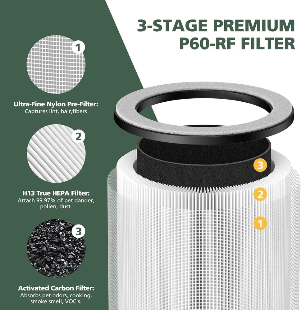 P60 Replacement Filters for TPLMB Air Purifier, Also Vhoiu KJ50 Air...