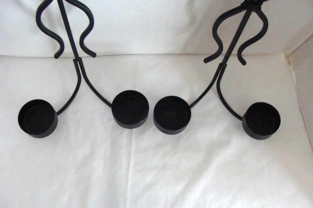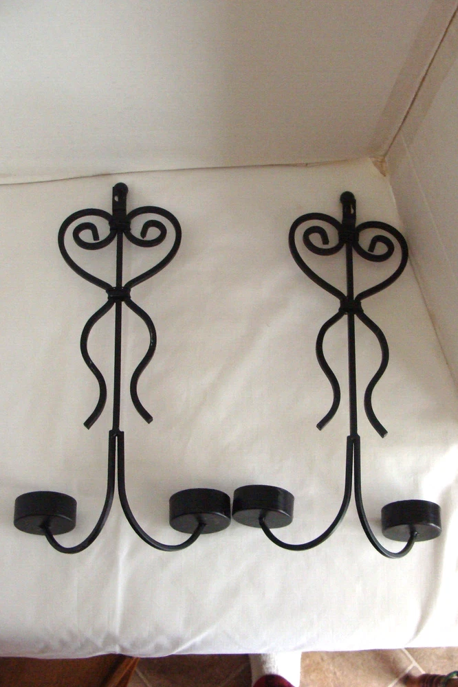 PAIR OF BLACK METAL WALL HANGING CANDLE SCONCES-EUC