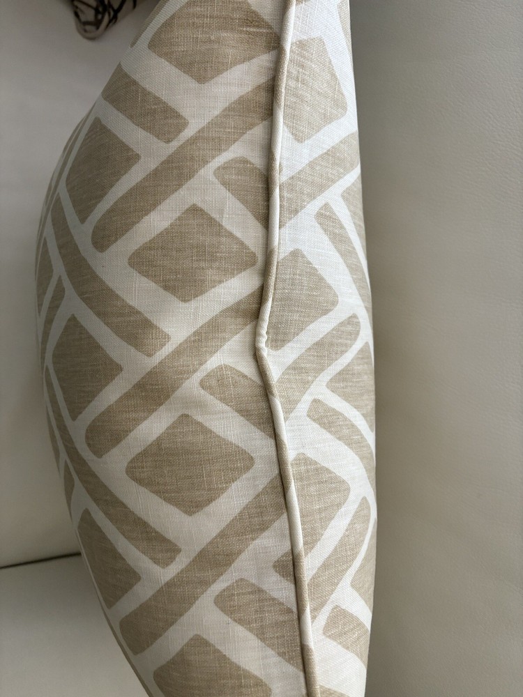 PAIR - Thibault Geometric Beige Linen Custom Pillow Covers 21x21 in 3 Options