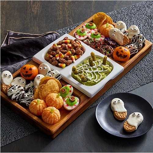 VERSATILE CHARCUTERIE SET With this durable acacia wood board and ceramic dish, you can create gorgeous spreads for every occasion. The board has a flat side that's perfect for meat and cheese, butter boards, and dessert boards, and a welled side for vegetables and fruit. Use the ceramic dish to serve dips-it fits in the wells of the board, or you can use it separately! KEY FEATURES Use the dual-sided board and dish separately or together for unique combinations. The acacia wood board is durable enough to cut on. PRODUCT DETAILS Includes a wood serving board and ceramic dish Ceramic dish is microwave- and oven-safe to 400°F (200°C) Made with acacia wood, so it has rich color and distinctive woodgrain The ceramic dish is dishwasher-safe and the wood board is hand wash only SPECS 19" x 9½" x 2¼" (48-cm x 24-cm x 5.5-cm) board 1¾ cup (425 mL) board well capacity Ceramic dish has two ¾ cup (175 mL) wells Acacia wood and coated ceramic 4½ lbs. (2 kg) total GUARANTEE Wood Board: 1-year guarantee Ceramic Dish: 3-year guarantee