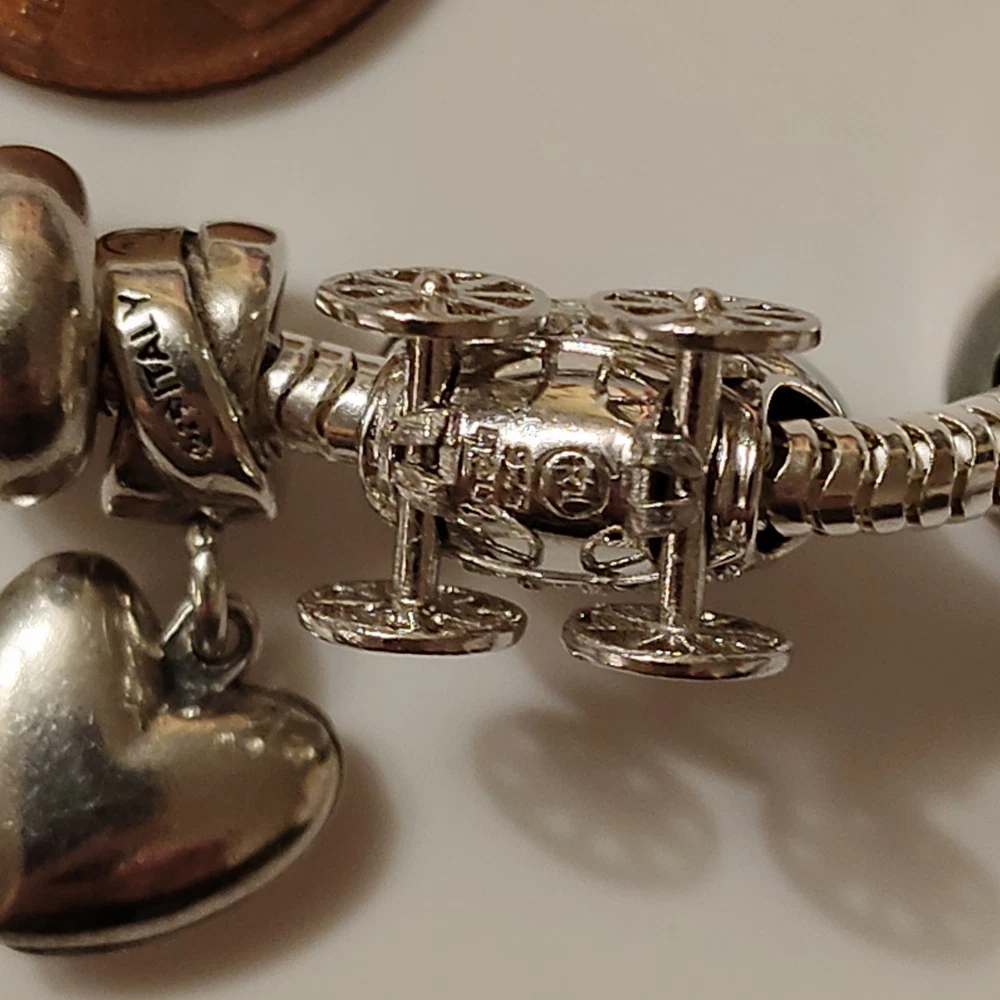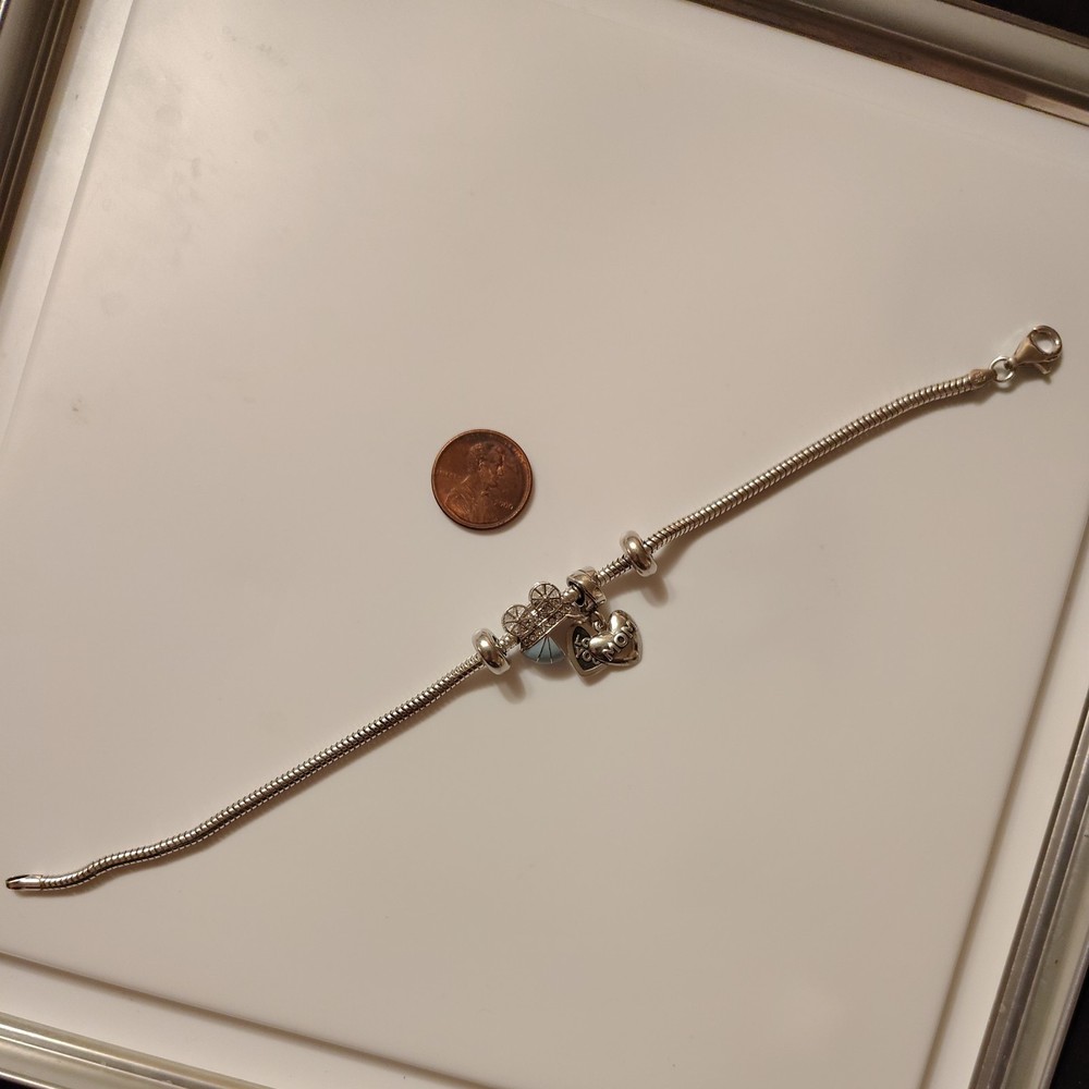 Crafted with precision, this PANDORA charm bracelet is a sterling example of elegance and personalization. The bracelet, stamped with a 925 mark, denotes its purity and fine craftsmanship. Accompanied by four charms, each with its own R.L 925 Italy stamp, the ensemble promises to be a timeless addition to your jewelry collection. With an item length of 8 inches, the bracelet offers a comfortable fit that complements any wrist size. The charm bracelet style allows for versatility and self-expression, making it an ideal gift or a cherished keepsake for yourself. The bracelet's authentic vintage appeal is a testament to its enduring allure.