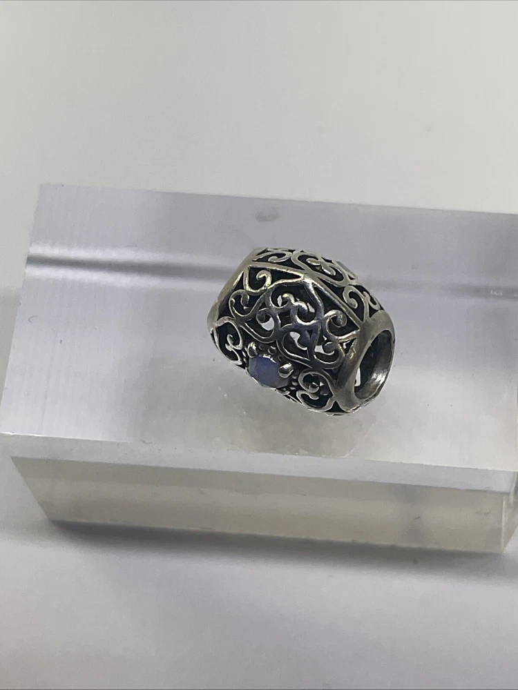 The PANDORA 925 Silver October Birthstone Heart Charm features a beautiful opalescent main stone in a heart-shaped design. The charm is hallmarked and made of sterling silver with a metal purity of 925. The charm is part of the PANDORA brand and is designed in a charm style to be added to a bracelet with a ball/bead chain. Perfect for those born in October or anyone who loves opalescent jewelry, this charming piece adds a touch of elegance to any bracelet.