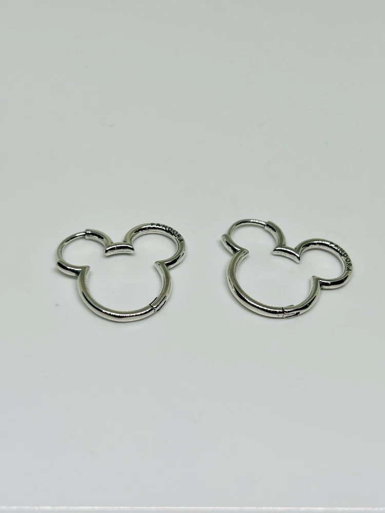 Material: 925 ale Style: Hoop Gender: Female Brand: PANDORA Main Stone Color: no stone Metal: Sterling Silver Base Metal: 925 Metal Purity: 925 Shape: hoop Closure: Leverback Country of Origin: Thailand Type: Earrings Theme: Disney Mickey Mouse Silhouette Hoop Earrings Country/Region of Manufacture: Thailand Color: Silver Fastening: Leverback Vintage: Authentic
