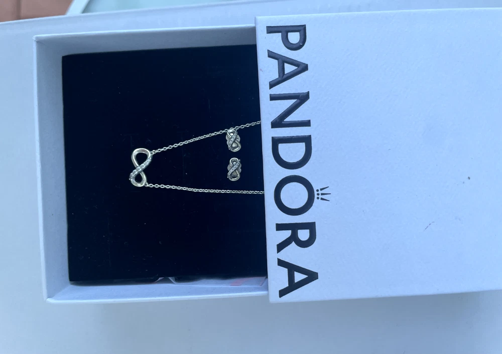 PANDORA Sterling Silver Infinite Love Jewelry Set Necklace + Earrings. Shipped with USPS Ground Advantage.