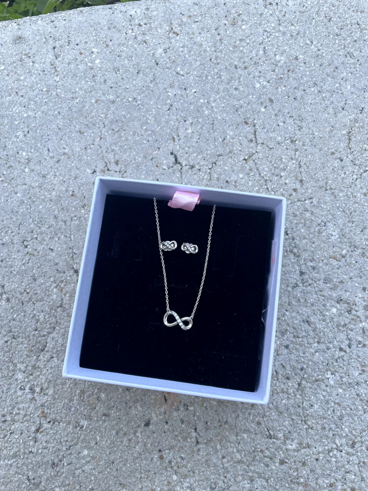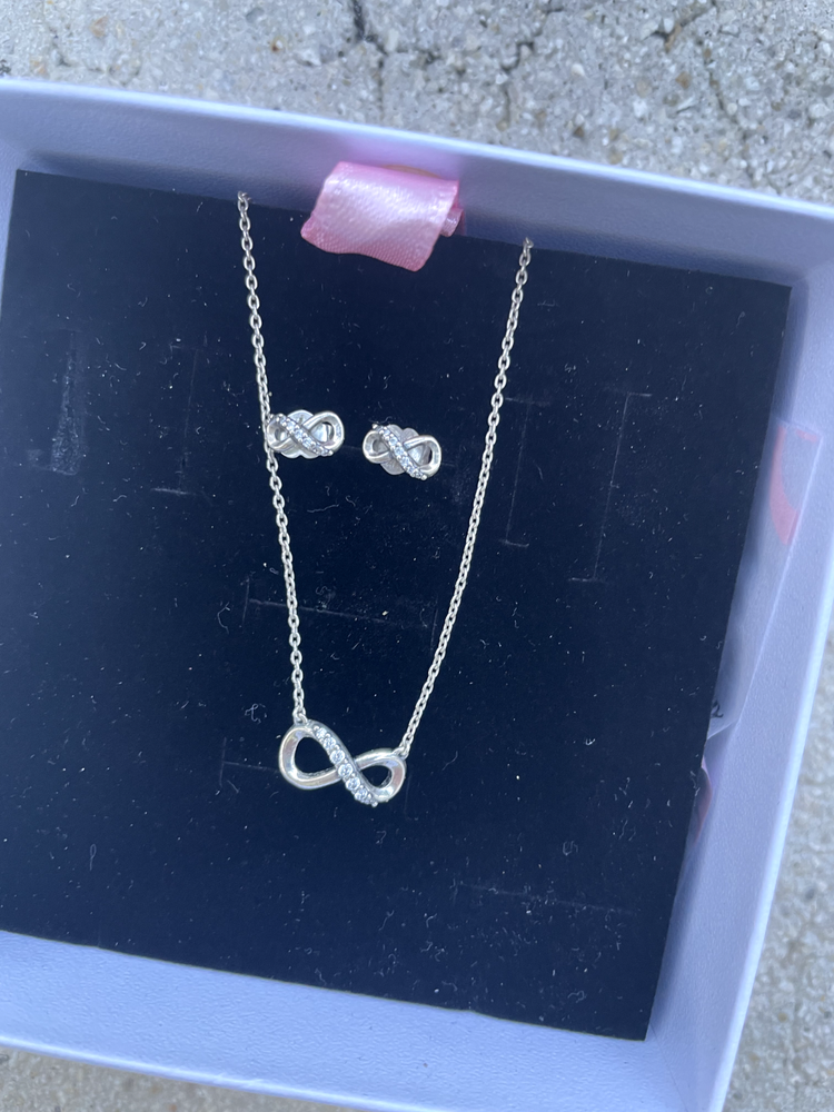 Absolutely love this set! The infinity design is delicate yet meaningful, and the sterling silver gives it a timeless elegance. The necklace and earrings pair perfectly together—lightweight, comfortable, and versatile enough for everyday wear or special occasions. Shipping was smooth, and the pieces arrived beautifully packaged. A stunning gift or a treat for yourself!