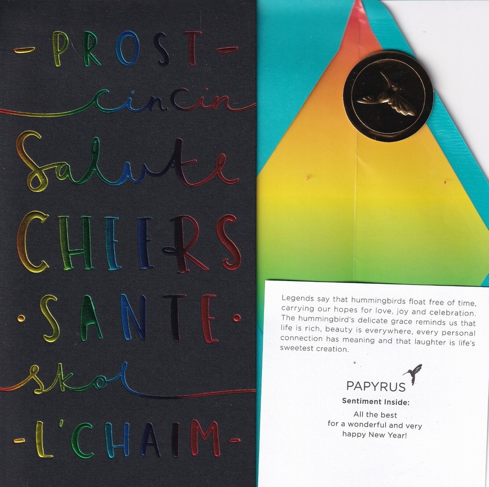 PAPYRUS NEW YEAR CARD NIP MSRP $5.95 PROST CARD . Absolutely a beautiful card! New in it's original packaging with an envelope. Awesome card made with quality, at a great price! Check out our other Papyrus cards. We have a wide selection of cards and styles for the holidays. We will be happy to help you out! Also If your buying multiple cards from us please add them to your cart prior to purchasing for ease of buying. Thank you!