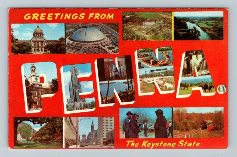 PA-Pennsylvania Keystone State General Greetings LARGE LETTERs Vintage Postcard