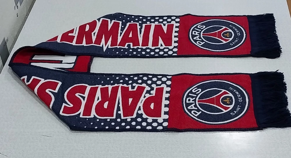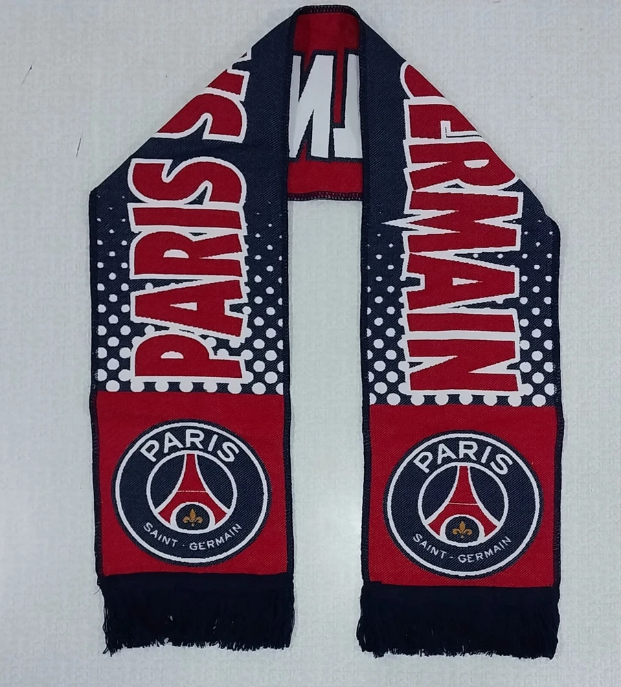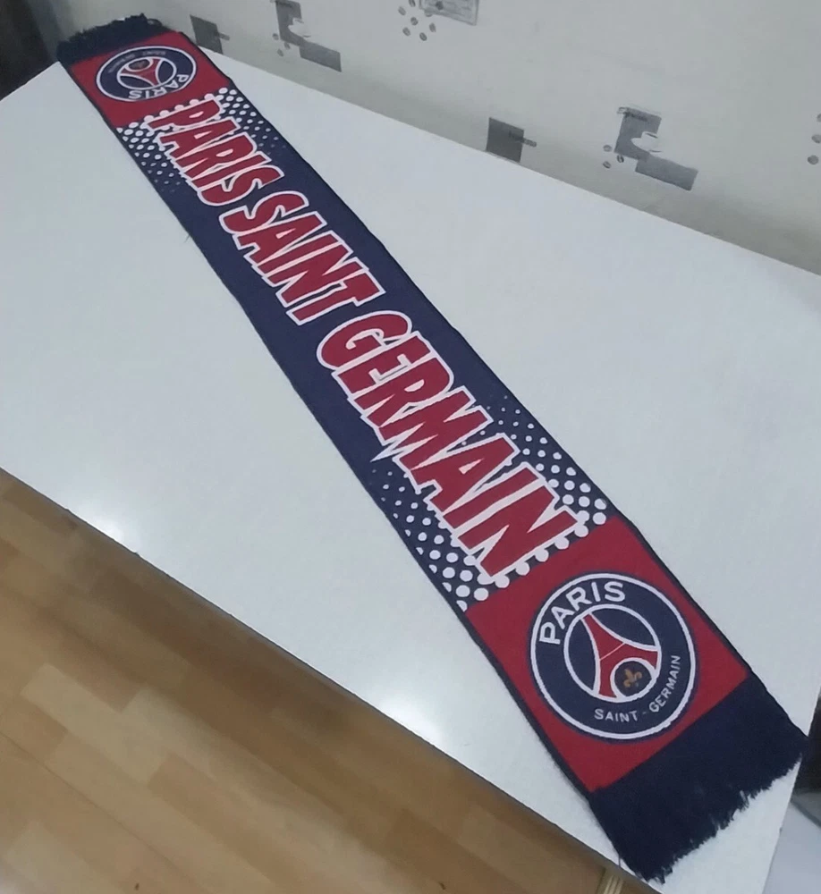 The product is a high-quality knitted scarf designed for fans of Paris Saint-Germain football club. It features the team's colors and logo, making it a stylish accessory for supporters to show their allegiance. The scarf measures 53.1 inches in length and 7.5 inches in width, providing ample coverage and warmth for the user. Made in Turkey, this unisex adult scarf is a must-have item for PSG fans looking to represent their favorite team in style.