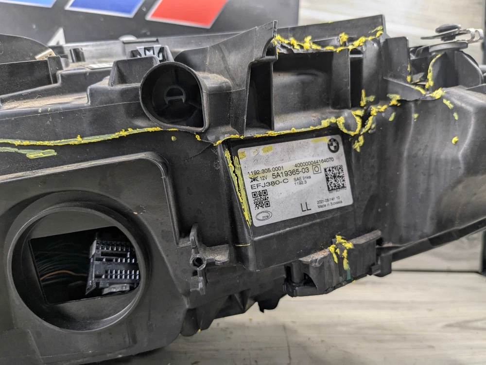 *PARTS* OEM BMW PRE-LCI G22 G23 G26 G80 G82 G83 M3 M4 Left Driver LED Headlight SKU: 38339 Brand: BMW Condition: For Parts or Not Working Notes: *PARTS* Lens cracked in pieces! Housing had 3 broken tabs and multiple cracks, scratches and scuffs! SOLD AS IS!!! MPN: 5A19365 Manufacturer Part Number: 63119851039 OE/OEM Part Number: 5A19365 Interchange Part Number: 5A19365 We're on Instagram! Follow us! oe_mgarage All parts are used unless otherwise noted! Please understand that being that parts are used there may be some wear and tear & scratches etc. We cannot guarantee the condition of paint & or that paint color will be an exact match as yours. We try to show as much of the condition as possible through photos and notes! Original Car: 2022 BMW M4 Series: G82 Vin Number: WBS43AZ08NCH60793 Mileage: 0 Engine: S58B30T0 Transmission: 1 Part number: 5A19365, 63119851039, 9851039 Exterior Color Paint Code: TORONTO ROT METALLIC (C3G) SKU: 38339 Location: C232 Notes: *PARTS* Lens cracked in pieces! Housing had 3 broken tabs and multiple cracks, scratches and scuffs! SOLD AS IS!!! 30 DAY WARRANTY!! Warranty covers the cost of the item! It does not cover shipping or labor! Used condition items may have minor imperfections. Please look at pictures for details! And understand that this is a USED part after all! Compatibility is the responsibility of the customer to ensure!! Please feel free to reach out with any questions!!