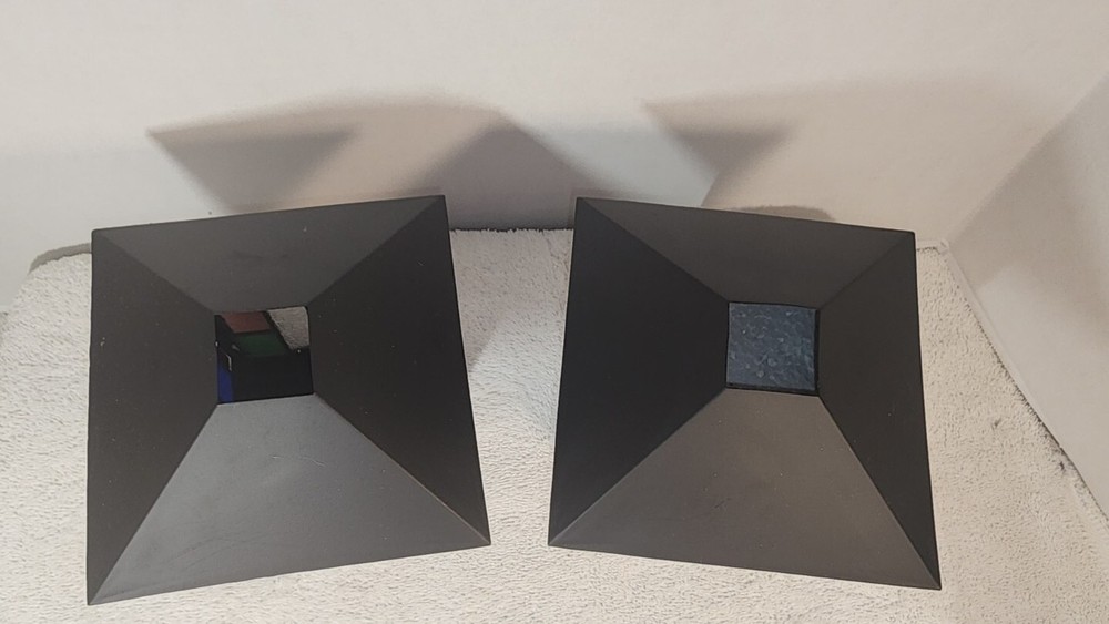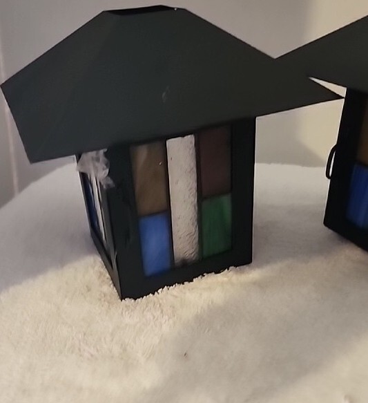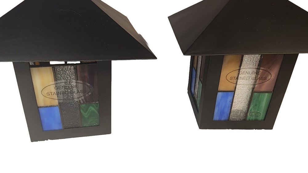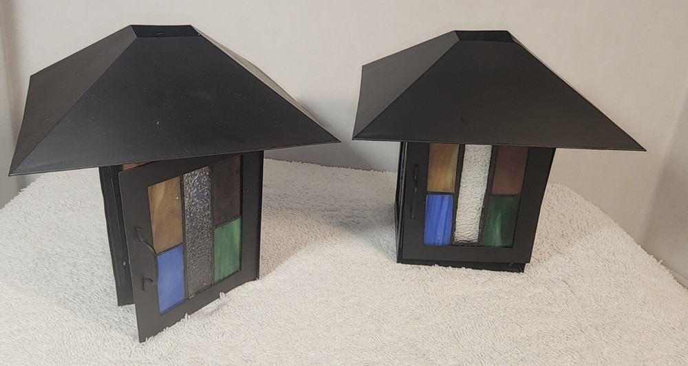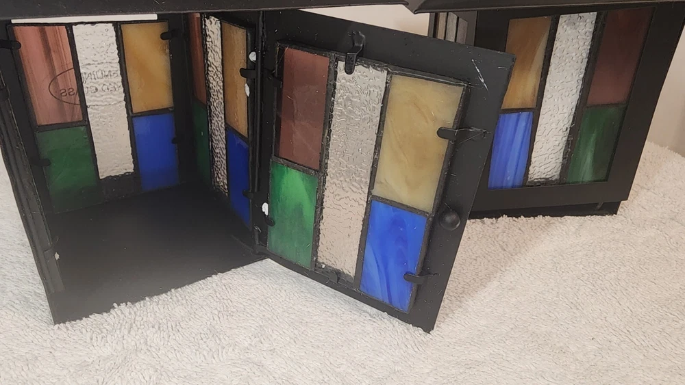 Elegant beautiful set of PartyLite Stained Glass Artisan Square Votive Holders. The vibrant multicolor Aztec pattern and 3 1/4 inch cube size make them the perfect addition to any decor. These candle holders are crafted from high-quality glass and are brand new, never used. Height 6 inches Candle Box Area Width 3.5 inches Personal Inventory Not used but I do.not have the original boxes