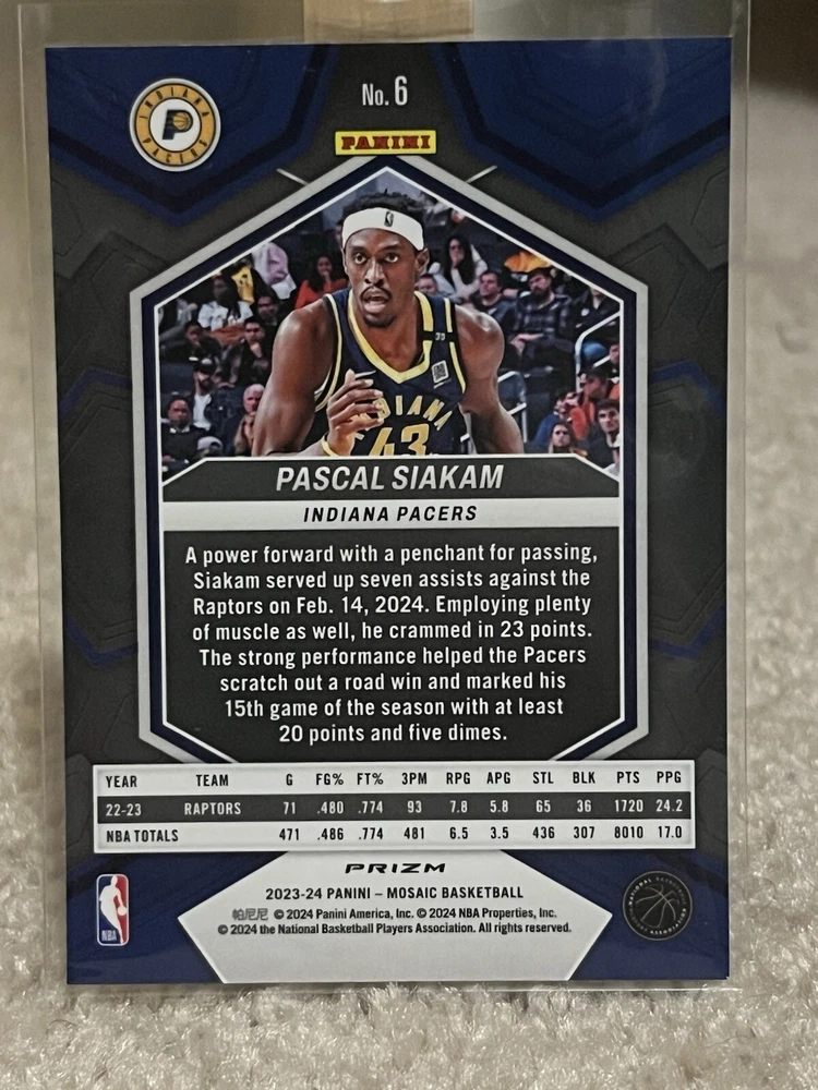 PASCAL SIAKAM 2023-24 Panini Mosaic #6 MOSAIC PRIZM SILVER -Indiana Pacers
