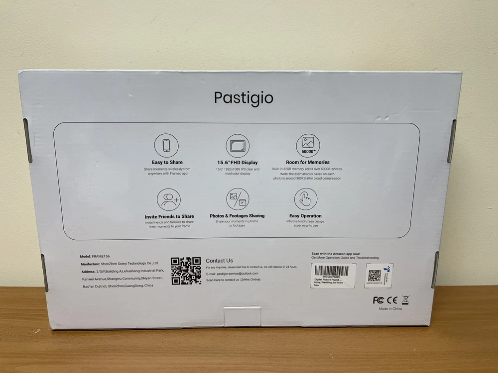 The PASTIGIO 15.6 Digital HD WiFi Picture Frame is a sleek and modern device featuring a 15.6-inch IPS LCD touchscreen display with a maximum resolution of 1920 x 1080. With 32GB of storage capacity, this picture frame allows you to display a large number of photos and videos in high definition. The touchscreen feature makes it easy to navigate through your media and customize your viewing experience. Perfect for showcasing memories in a dynamic and interactive way, the PASTIGIO Picture Frame is a versatile addition to any space. Shipped with USPS ground advantage.