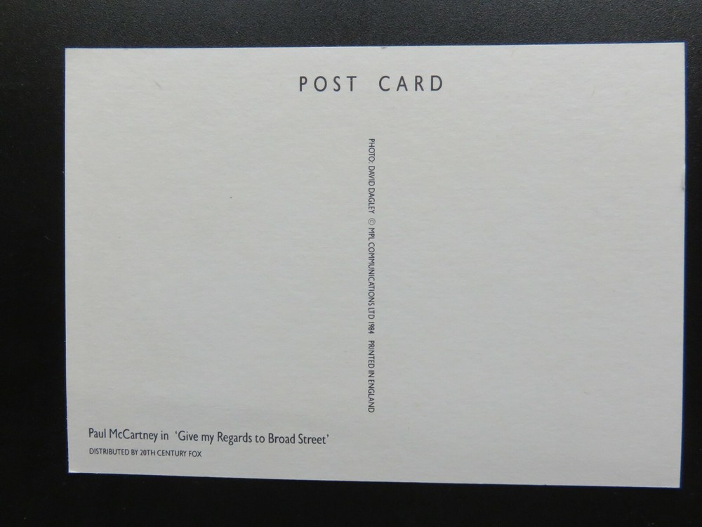 <DIV style="TEXT-ALIGN: center"><IMG border=0 src="https://ti2.auctiva.com/sw/java.gif"><BR> <TABLE align=center> <TBODY> <TR> <TD><A style="TEXT-DECORATION: none" href="https://www.ebay.co.uk/usr/paddysgoose" target=_blank><IMG border=0 src="https://ti2.auctiva.com/sw/noflash.gif"></A></TD> <TD height=27 vAlign=center align=middle><FONT size=2 face=arial><B><A href="https://www.ebay.co.uk/usr/paddysgoose" target=_blank>paddysgoose</A> Store</B></FONT></TD></TR></TBODY></TABLE></DIV> <IMG border=0 src="https://ti2.auctiva.com/web/aswCredit.gif"><BR><A href="https://pages.ebay.com/seller-center/listing/listing-advanced-sellers/third-party-listing-tools.html#m22_tb_a2__13" target=_blank><IMG border=0 src="https://ti2.auctiva.com/images/sc1line1.gif"></A> THIS IS A ORIGINAL 1987 PAUL McCARTNEY GIVE MY REGARDS TO BROAD STREET PROMO CARD IN EXCELLENT CONDITION MEASURES 6" X 4" PLEASE SCROLL DOWN FOR MORE PICTURES