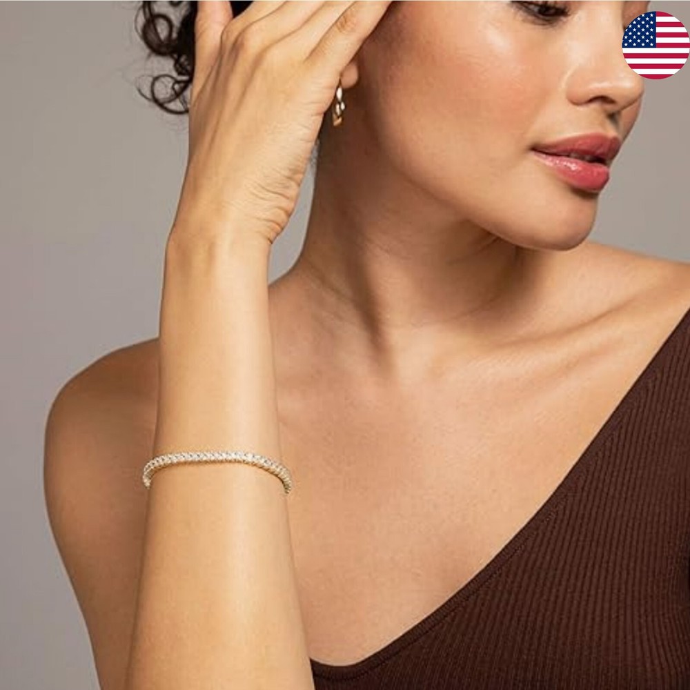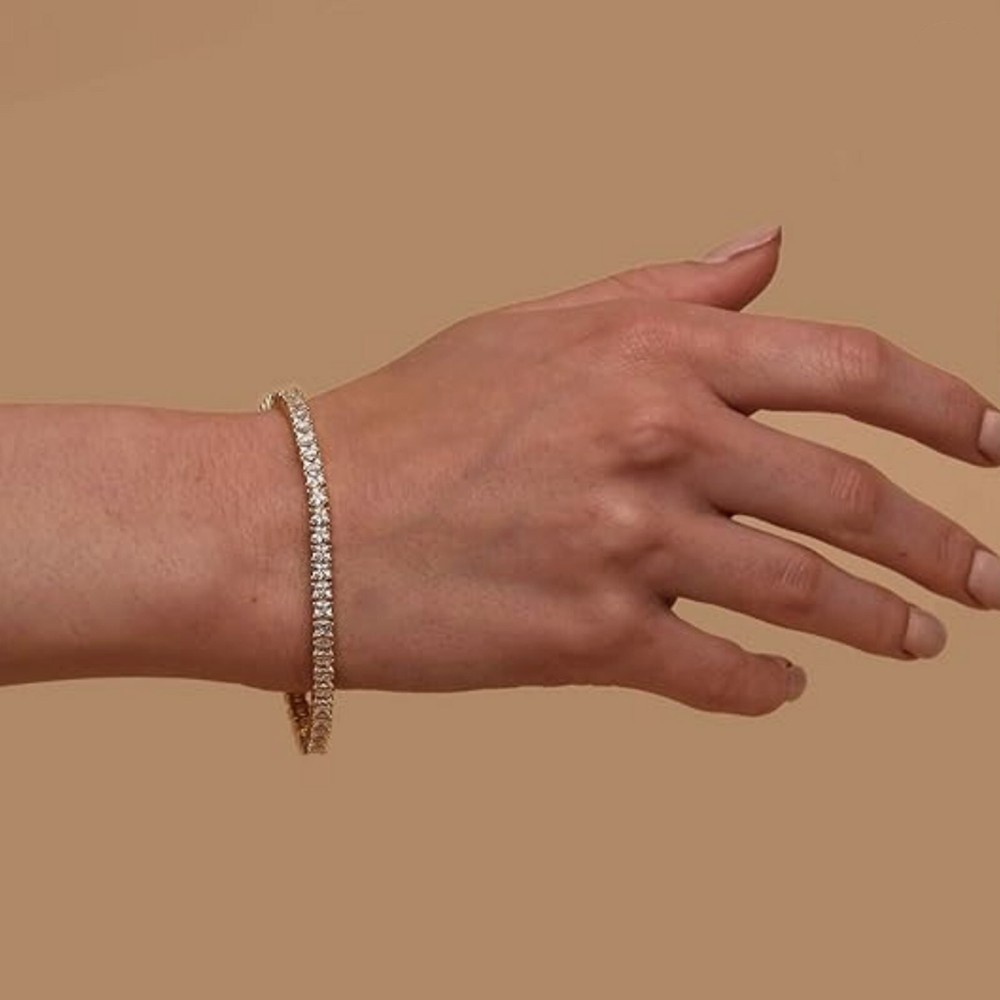 The PAVOI 14K Gold Plated Cubic Zirconia Classic Tennis Bracelet is an elegant piece of jewelry featuring brilliant cut white cubic zirconia stones set in a tennis style design. The bracelet is made of steel with a gold plating, giving it a luxurious look. With a length of 7.1 inches, this bracelet is a perfect gift for Valentine's Day or any special occasion, adding a touch of sophistication to any outfit.