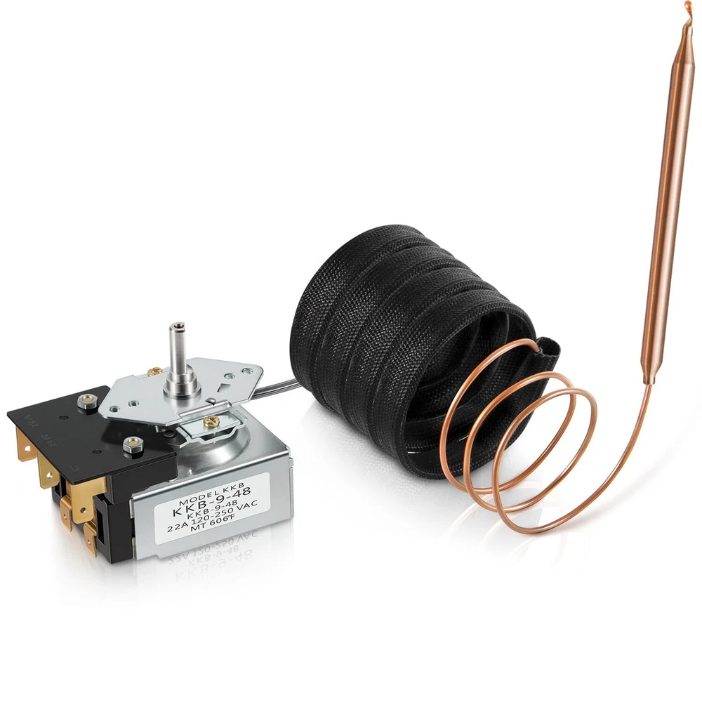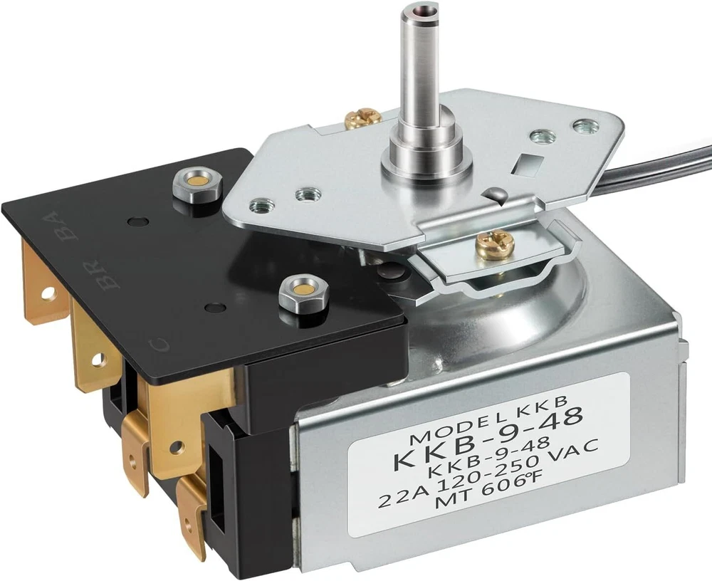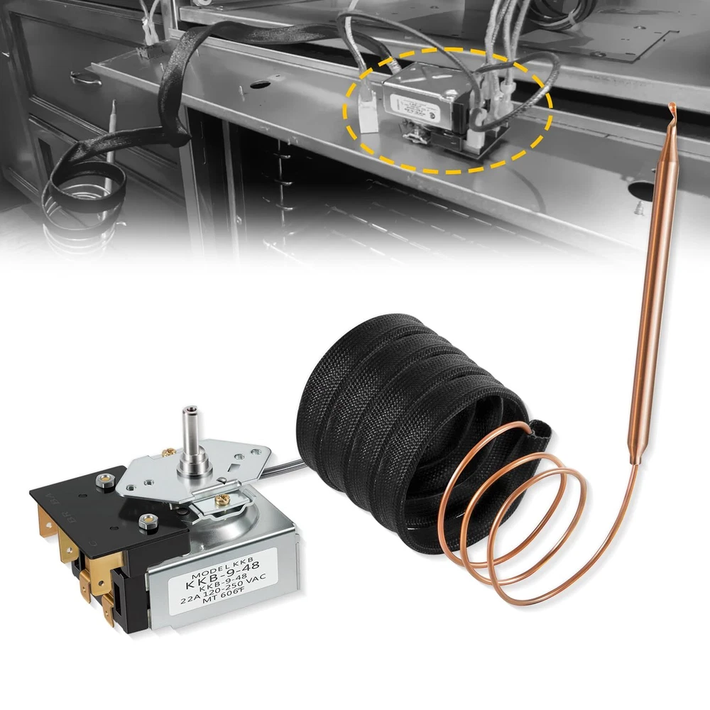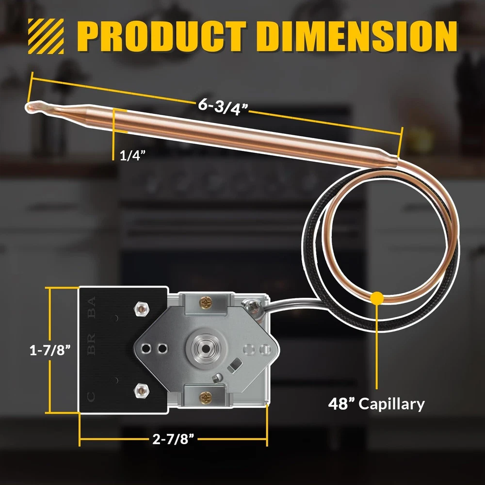 PB010036 Bake/Broil Thermostat for Awoco,Viking Range Stove Oven KKB-9-48 Wide Compatibility: The PB010036 Bake/Broil Thermostat is used in a wide range of Viking Models — EVGIC365; EVGIC485; SVGIC305DSI; VGIC245; VGIC245G; EVGIC305; VGSC305; VGIC245K; VGIC245Q; VGIC305; VGIC305DSI; VGIC307; VGIC307DSI; VGSO165; VGIC365; VGIC367; VGIC485; VGIC487; VGIS300; VGIS360; VGIS480; VGSS300; VGRC365; VGRC485; VGRC605 (All VGR/VCM/VRT Units); VGSC300; VGSS360; VGSS480. Used on any non DSI ignition system. It is also fit for Awoco and other Range Stove Ovens, ensuring universal Product Specification: Replacement Part Number: PB010036 / KKB-9-48; Dimensions: 2-7/8” x 1-7/8”; Current: 22A; Voltage: 120-250 VAC; Temperature Range: 100-450℉ (38-232℃); Max Temperature: 606℉ (320℃); 1/4" x 6-3/4" copper bulb with 48" capillary. Please notice that don't bend too much or cut the capillary off the probe bulb, liquid or oil is inside Precise Temperature Control for Baking and Broiling: This thermostat offers precise control of oven temperatures up to 606℉ (320℃), ensuring consistent heat for both baking and broiling operations. It allows you to cook with accuracy, achieving perfect results every time, whether you’re baking delicate pastries or broiling meats Durable Stainless Steel Construction: Built with high-quality stainless steel, the PB010036 Thermostat Replacement is highly durable and resistant to wear and tear. It is designed to withstand harsh kitchen environments, providing long-lasting performance and reducing the need for frequent replacements Efficient Performance and Energy Saving: The KKB-9-48 PB010036 thermostat is engineered for efficient performance, helping your oven maintain the desired temperature with minimal energy consumption. This not only improves cooking efficiency but also reduces energy costs, making it an economical option for your kitchen Easy Installation for Quick Replacement: The KKB-9-48 PB010036 thermostat is designed for simple and quick installation. With its universal fit, it allows users to easily replace the old thermostat without needing too much professional help, saving time and effort Package Included: PB010036 Bake/Broil Thermostat Payment Delivery details Terms of sales Contact us Payment Orders will be ship out within 1-3 business days after payment has cleared. Delivery details Orders from Saturdays, Sundays or holidays will process on next business day and will be ship within 24 hours. Some shipments could take longer subject to your local customs authorities. We only ship to confirmed ebay addresses. Your ebay address MUST MATCH your Shipping address Terms of sales We accept 60 days return guarantee for all Items If you are unsatisfied with something you bought from us, you may send it back within 60 days of receipt, and we shall be happy to exchange or refund. Contact us If you have any question, please email contact me, we can solve all the problem. Brand Unbranded Type Bake/Broil Thermostat MPN PB010036 Manufacturer Warranty 1 Year Model PB010036 Installation Universal Installation Set Includes Bake/Broil Thermostat Power Source Electric Suitable For for Awoco, Viking Range Stove Oven Color Silver Compatible Brand for Viking Compatible Model PB010036 Capacity 6.1-7.0 ft³