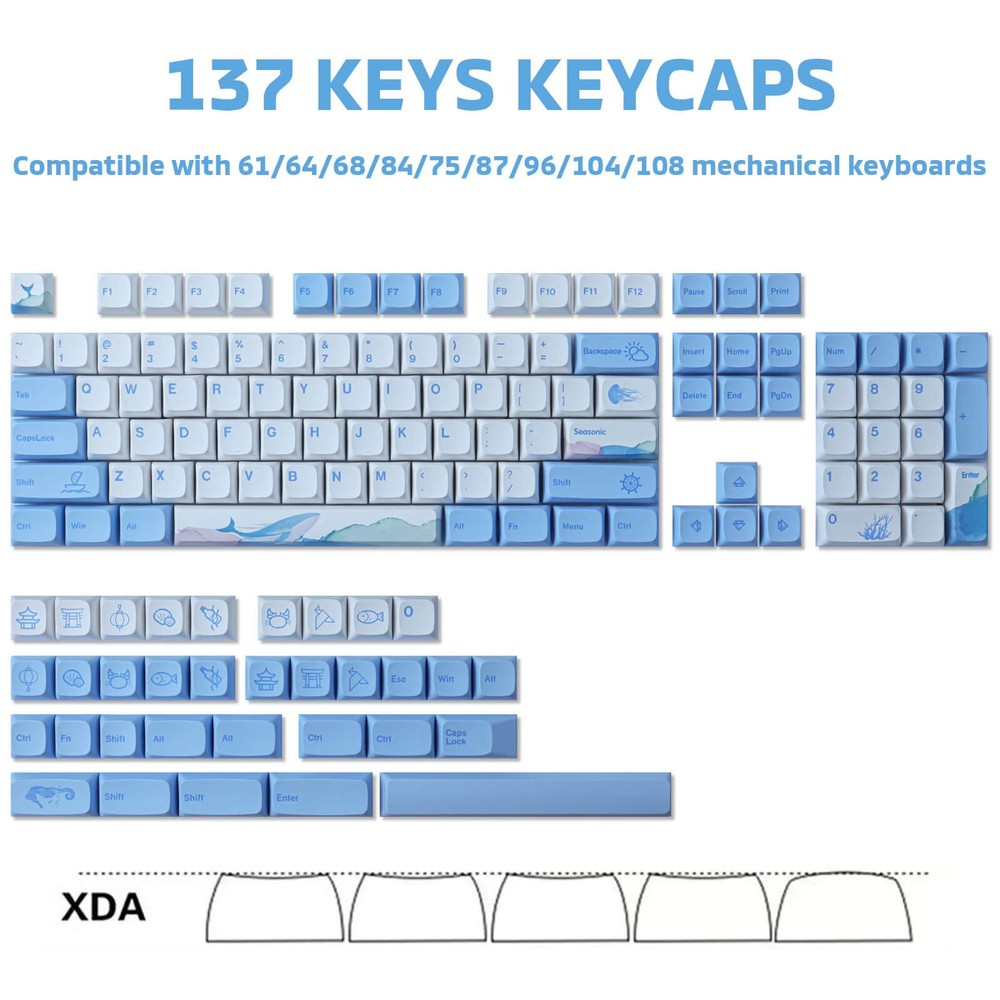 【Widely Compatible】This keycap set contains 137 keys. it can fit most 61/64/68/84/75/87/96/104/108 mechanical keyboards 【Durable PBT Material】With high-quality PBT material and an anti-grease coating, these keycaps provide top-notch durability and an excellent feel for your typing. less prone to grime buildup 【Dye Sublimation Process】The keycap adopts advanced dye sublimation technology, the color pattern is more vivid, not afraid of oil stains, and has a long service life 【XDA Profile】The XDA profile ball cap looks beautiful, increasing the contact surface between the keycap and the fingers, thereby improving the comfort of typing 【Extra-Thick Key Walls】 Provides maximum durability and solid key presses