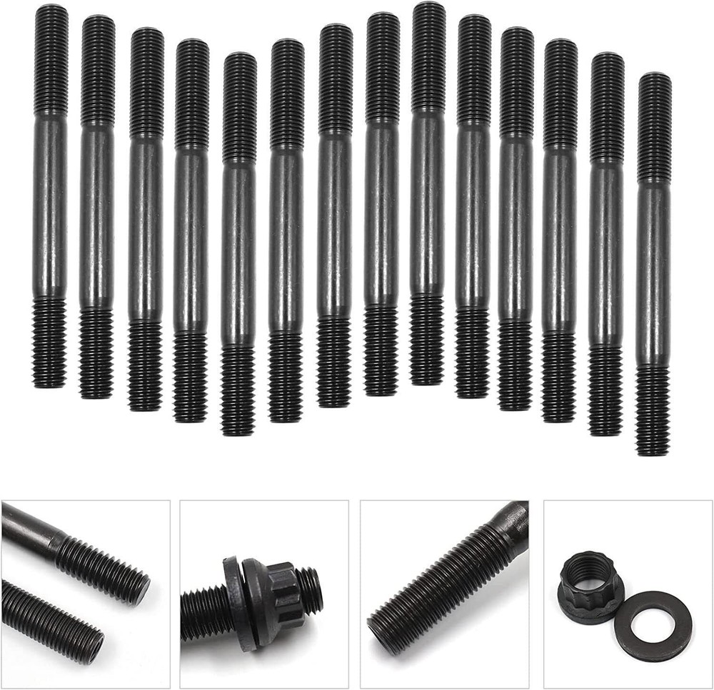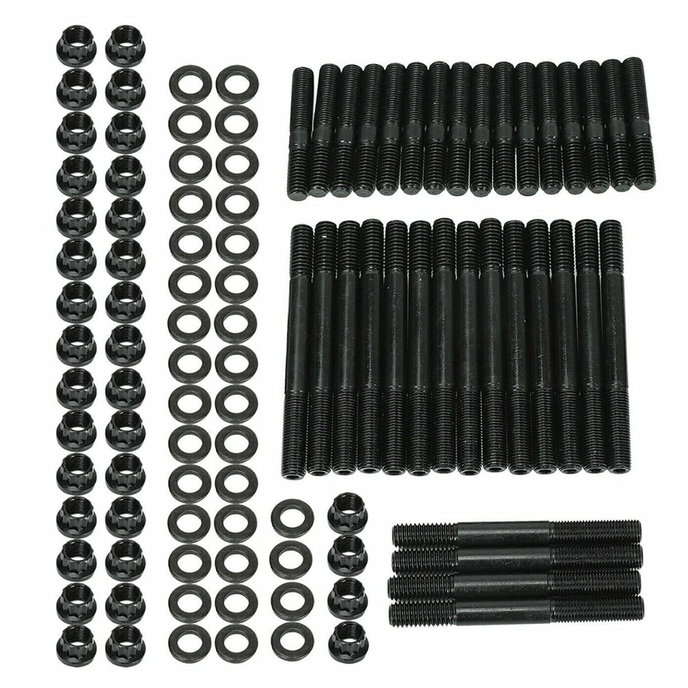 PCE279.1001 Cylinder Head Stud Kit For Small Block Chevy SBC 265 267 283 302 350 Item Description SBC Cylinder Head Stud Kit. OEM Part Number: PCE279.1001, 134-4001, 2451-S High Quality: Build to strict quality control standards, Great strength and durability. Easy to Use: Firm fastening and easy operation, High quality and great Fitment. Fitment: Replacement for Chevy Small Block SBC 265 267 283 302 305 307 327 350 383 400 Head Studs Package Includes: 14 x Long studs, 4 x Medium length, 16 x Short studs, 34 x screws, 34 x pads Features 1.Each cylinder head screw set is strictly manufactured to ensure zero defects-hardened and parallel ground washers are included with zero failures to ensure uniform load distribution and accurate torque readings. 2.The bolts are cold forged to ensure molecular integrity and heat treated before thread rolling and machining. 3.Product installation involves the engine, the internal structure of the engine is complex, Professional Installation is Highly Recommended. Specifications Condition:100% Brand New Warranty: 90 Day Free Return:30 Day Color:Black Fitment Chevy Small Block SBC 265 267 283 302 305 307 327 350 383 400 Head Studs Please Double-Check that this is compatible with your vehicle. Package Included 14 x Long studs 4 x Medium length 16 x Short studs 34 x screws 34 x pads As pictures show FAQ: I purchased by mistake, how do I cancel the order? Please contact us ASAP. If the item has not been shipped out we can cancel the order for you. If the item was shipped out you can refuse the package and wait for the item to return to us. I received your item but it does not fit or is defective Please contact us so we can assist you on the matter. Buy with confidence Our quality is based on meeting the requirements of the manufacturer and improvement them in design problems manufacture. NOTE: (1)It would be highly appreciated if you might contact us first once you have any problems concerning the items. And you can expect all the issues would be resolved ASAP! (2)Please let us know before you send us the neutral/negative feedback that wont help to finish the issues. And I will definitely try my best to provide the best solutions which would meet our satisfactory! (3)According to the distance of the receipt address items would be sent from CA or NJ