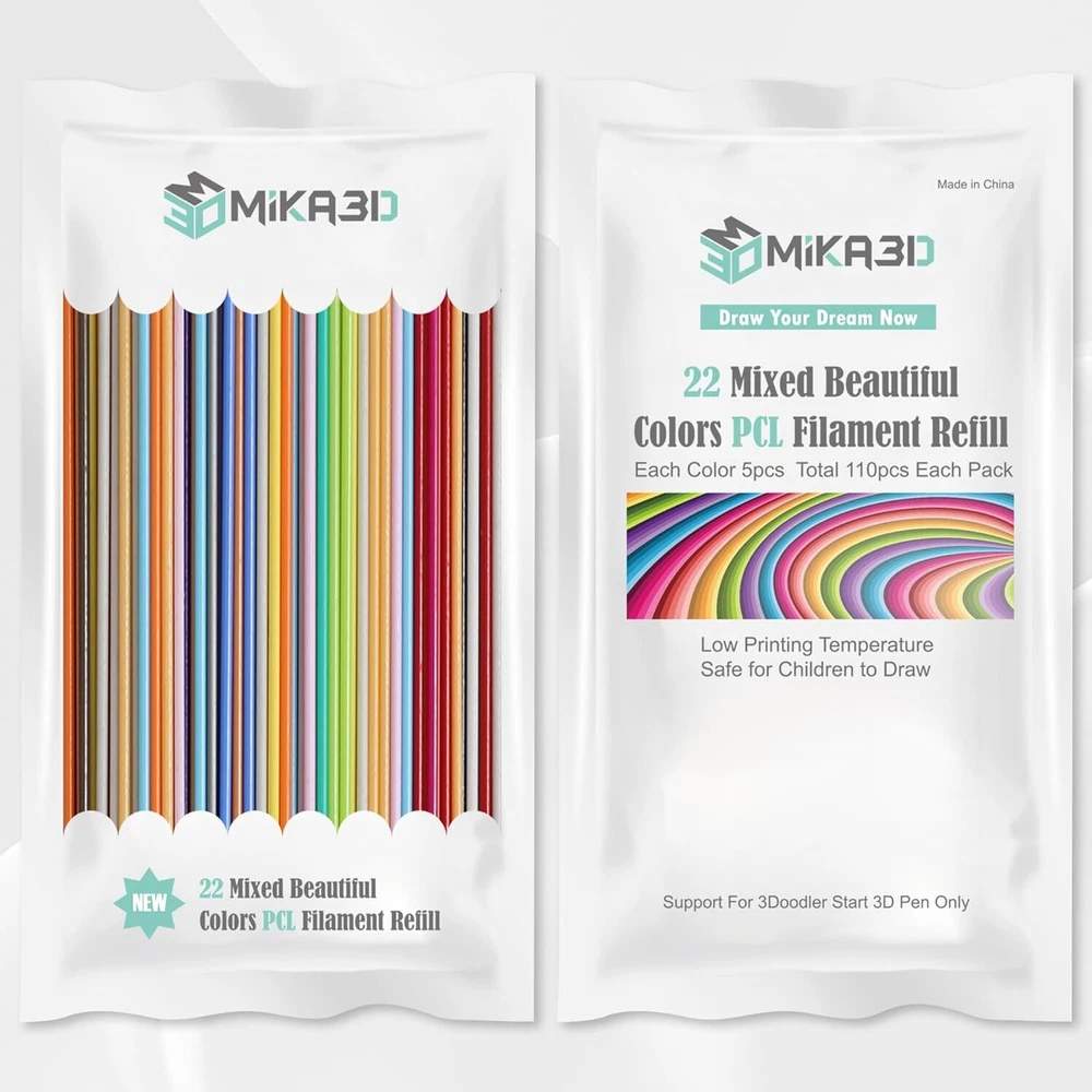 PCL Filament Refill Pack for 3Doodler Start+ Pen - 22 Colors, 15cm Strands