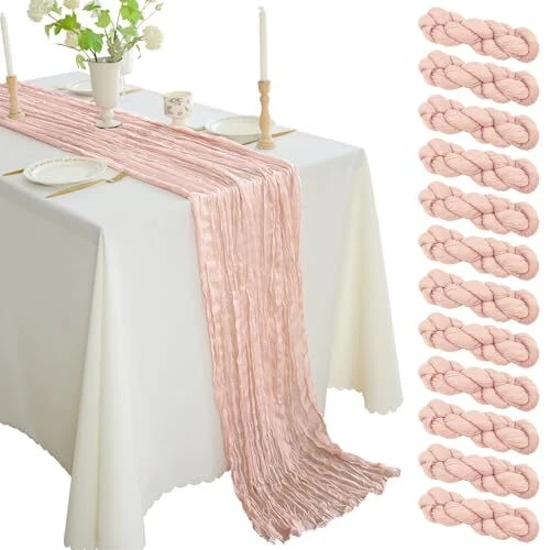 30 Days Return Policy Fast Delivery Trusted seller 12PCS Cheesecloth Table Runner 10FT Gauze Boho Rustic Table Runner 35x120 Inch Long Table Runner for Wedding Baby Shower Bridal Shower Decoration(Dusty Pink) Product Description High Quality Material:The table runner is made of high quality polyester,the material is lightweight, soft to touch, natural drape, long-lasting and not easy to fade. It can be used as table decoration, chair cover sashes,home decor or party decor, etc. , can be easy to clean and fold to storage, washable and reusable Cheesecloth Table Runner Package:you will get 1 piece (beige) width*length(WxL):35 x 120 inch gauze table runner,this length is large enough to cover rectangle and round tables, can also be spliced together for long tables,we also have other color for you to choose to match your different theme decorations Cheesecloth Table Runners Design:This wedding table runner is specially designed with beautiful crinkling,the edges are carefully stitched makes this sheer table runner more graceful,It will gently sway in the wind. so it will adding a romantic atmosp to your occasion. These eye-catching gauze table runners making your party elegant, atmospheric and impressive to guests Wide Occasion: The table runner is a good choice for your table decor, even can be used for chair cover sashes,wall decor,home decor or decorative napkins, backdrop draping or even gift wrapping. Suitable for various types of occasion such as wedding, baby shower, bridal showers, birthday parties, theme party and all kinds of theme photography Gauze Table Runner Care Instructions:The wedding table runners can be hand washed or machine washed on a gentle cycle and air-dried,for long-lasting reuse, we suggest hand washing the runner in cold water with a mild detergent. If you prefer, you can also machine wash it on the gentle cycle using a laundry bag. Please avoid using bleach or soaking the runner for an extended period. Following these instructions will help maintain its quality and durability Shipping Returns Payment Shipping Shipping is FREE to all addresses other than APO/PO boxes in the lower 48 states. All our stock ships from US-based warehouses. Shipped via USPS or UPS (depending on location and package weight) Unless stated otherwise, all orders will ship within 24-72 hours of your payment being processed. Check our feedback to see the great reviews of FAST shipping we offer. Returns As our valued customer, we will do our best to make sure the product you receive arrives to you on time and as expected. If you are not satisfied with your purchase, please contact us within 30 days of receiving your order to process a return. Payment We currently accept payment via eBay managed payments only. Once payment is cleared, we will dispatch your shipment within 1-3 business days. Please refer to the "Shipping" tab for more information regarding shipping speed to your destination.