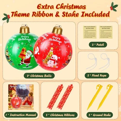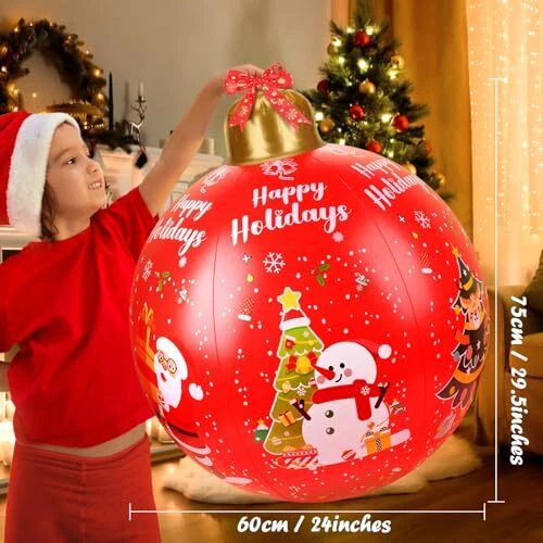 30 Days Return Policy Fast Delivery Trusted seller 4 PCS PVC 24 Inch Giant Inflatable Christmas Balls Inflatable Christmas Decorations Outdoor Inflatables Ornaments Xmas Blow Up Decorated Ball for Holiday Indoor Outside Yard Lawn Porch Decor Product Description Giant Inflatable Christmas Ball: This Christmas decorations set includes 4 colorful PVC inflatable Christmas balls, cute ribbons, ropes and ground nails. You can fix them in place. Whether you hang them alone or combine them, a strong holiday atmosp can be created. The 60 cm/ 24 inch inflatable balls are large enough to attract attention. Use them to decorate your yard, garden, lawn and porch with christmas decorations outside, and fill your home with the lovely Christmas spirit Christmas Theme: Each inflatable Christmas ball has 6 sides. The patterns on these giant inflatable balls for indoor and outdoor Christmas decor are exquisite and detailed, with rich and bright colors. They are inspired by symbols such as Santa Claus, snowman, reindeer, stockings, hats, snowflakes and candy canes. Add more fun and color to your holiday decorations. Christmas inflatables will make your Christmas outdoor decorations more charming Quality Materials: This Christmas decorations indoor inflatable ball is made of excellent quality PVC material. It is waterproof, reusable and not easy to break. The reinforced stitching ensures durability. Giant inflatable christmas ornaments can be used even outside. The stable ground nails and sturdy handles can fix it in place, offering you a long working life. Inflatable Christmas ball is a wonderful choice for outdoor Christmas decorations Easy to Use: SUIMOT Christmas outdoor decorations are easy to use. These inflatable Christmas decorations balls do not require complicated operations. Just use an air pump to inflate these giant inflatable Christmas balls from the top, and you can enjoy a creative inflatable Christmas theme indoor and outdoor decoration. The good air tightness can keep them full for a long time, making your Christmas decorations last longer Wide Use: You can hang the Christmas inflatable outdoor decorations on indoor doors and windows as per your preference, or use them as outdoor decorations in gardens, courtyards, terraces, and so on. Not only can they make your home or yard eye-catching, but they can also be employed in commercial activities, parties and other celebrations, making every corner brim with holiday atmosp. outdoor christmas decorations can be used in various occasions Shipping Returns Payment Shipping Shipping is FREE to all addresses other than APO/PO boxes in the lower 48 states. All our stock ships from US-based warehouses. Shipped via USPS or UPS (depending on location and package weight) Unless stated otherwise, all orders will ship within 24-72 hours of your payment being processed. Check our feedback to see the great reviews of FAST shipping we offer. Returns As our valued customer, we will do our best to make sure the product you receive arrives to you on time and as expected. If you are not satisfied with your purchase, please contact us within 30 days of receiving your order to process a return. Payment We currently accept payment via eBay managed payments only. Once payment is cleared, we will dispatch your shipment within 1-3 business days. Please refer to the "Shipping" tab for more information regarding shipping speed to your destination.